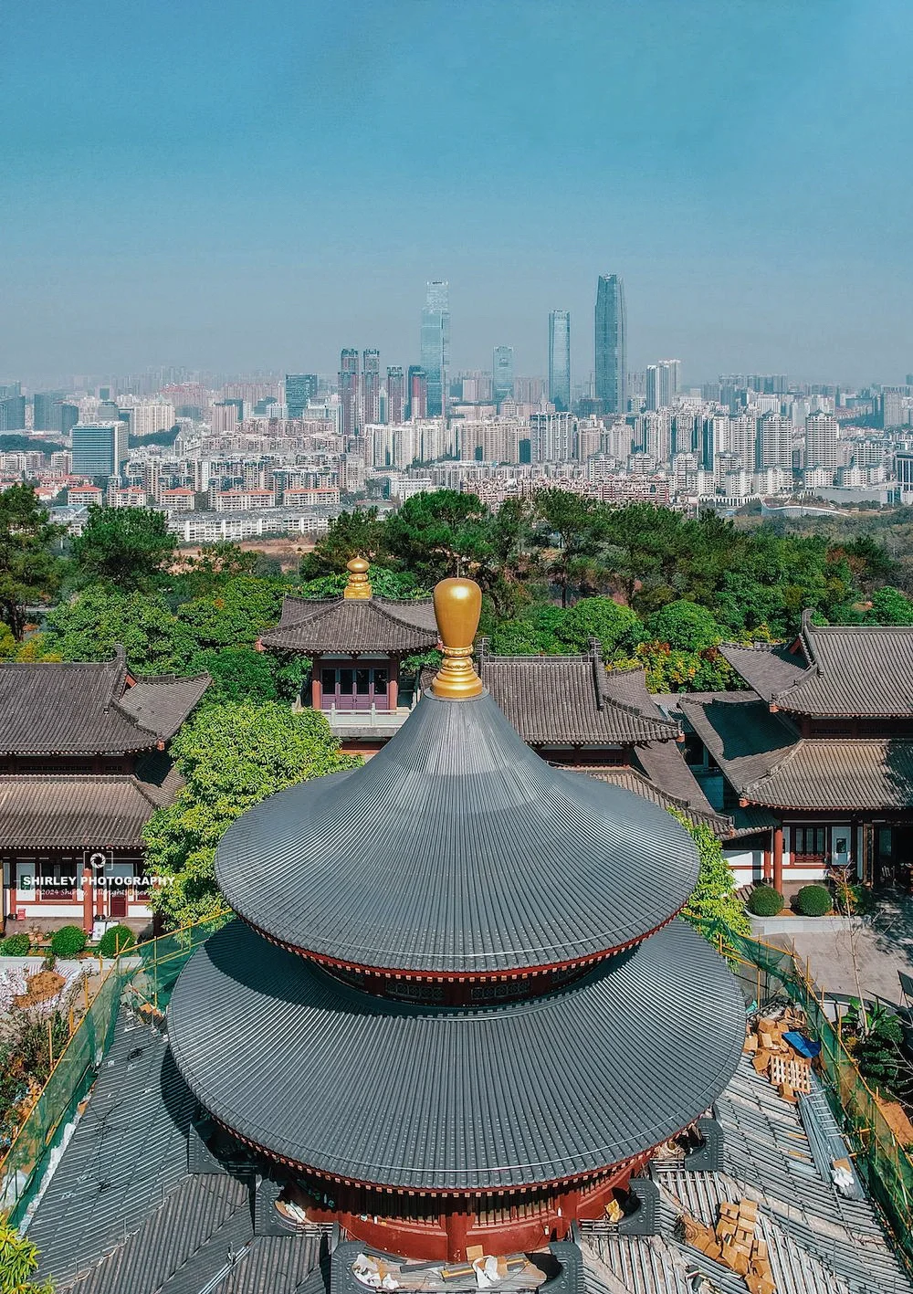 南宁小天坛与后面的城市天际线同框,目前在修地面拍不了,适合航拍
