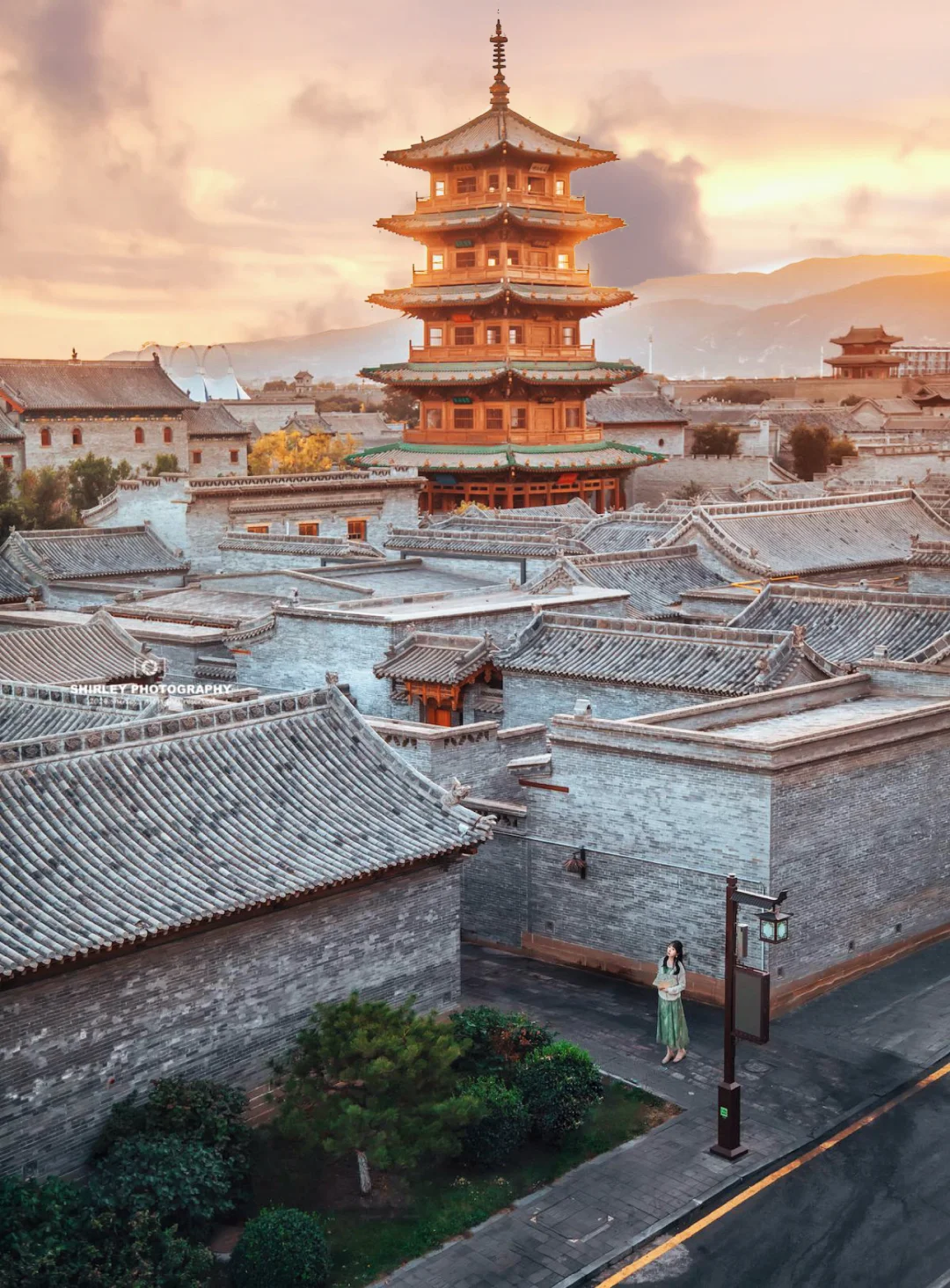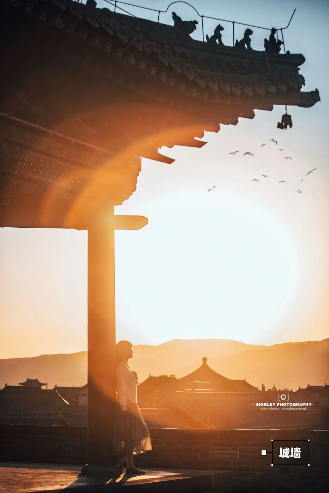 建议在黄昏时登上城墙,可俯瞰古城内街巷纵横、楼阁琳琅,远处山脉绵延横亘。