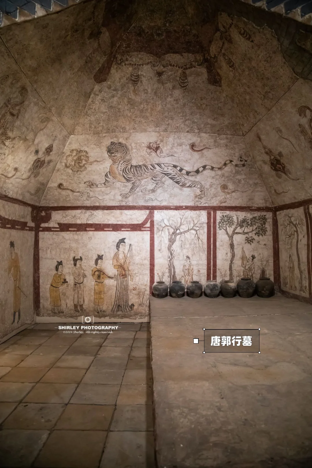 布展新颖,观众不多,有着很不错的参观体验。不仅能看到赵卿鸟尊本尊,最大的亮点莫过于将太原目前规模最大的唐代壁画墓——恒州刺史郭行墓直接搬到了博物馆展厅里,墓室构造以及壁画布局一目了然。