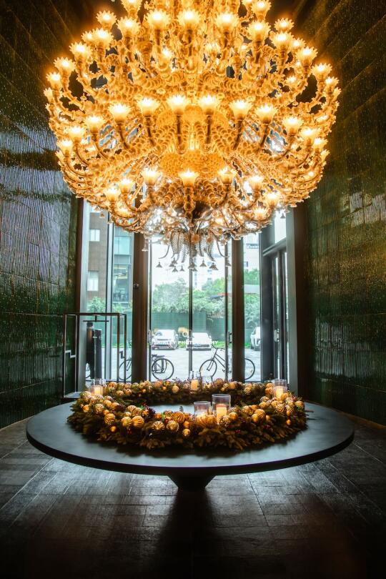 ▫️酒店楼门口高达6米的复古水晶灯,广角拍更有视觉张力