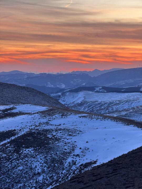 结果看到了图2️⃣! 说来也是奇怪,今年已经接近尾声,但北京还没下一场真正的大雪。雪不见我,我自去见雪[皱眉R] 京郊的雪❄️,果然不负期待! 就在我以为眼前的雪已经够美了的时候,大自然又送来了今日highlight moment——一场绝美的日落,把整片天都染成了温暖的橙红色。 那一刻我承认,我忍不住停下脚步,频频回头,仿佛偷看到了冬天的浪漫秘密。[色色R] 如果说雪是冬天的铺垫,那日落就是这个舞台上zuizuizui惊艳的谢幕[飞吻R]