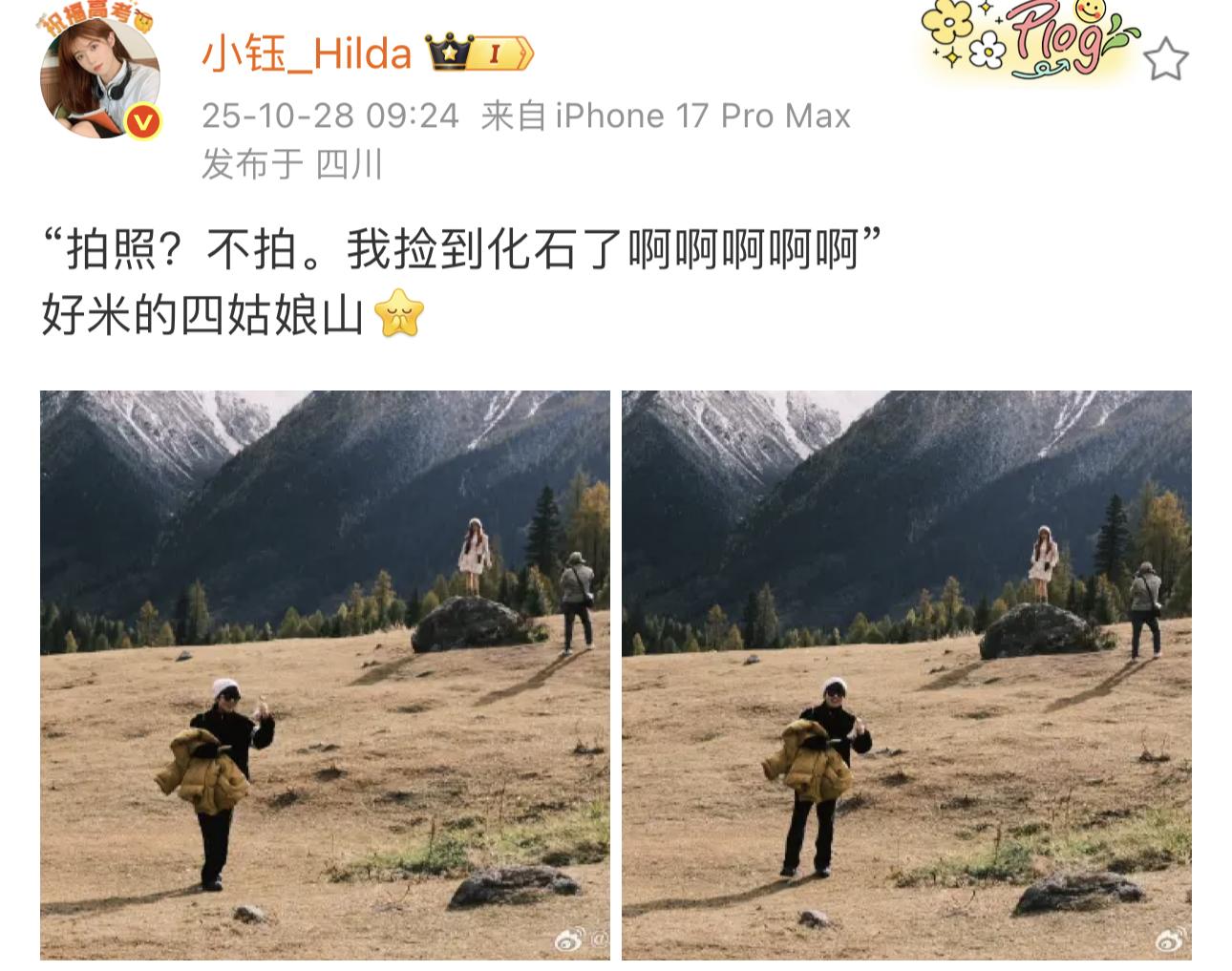 小钰分享和Rookie在四川游玩照:拍照?不拍。我捡到化石了