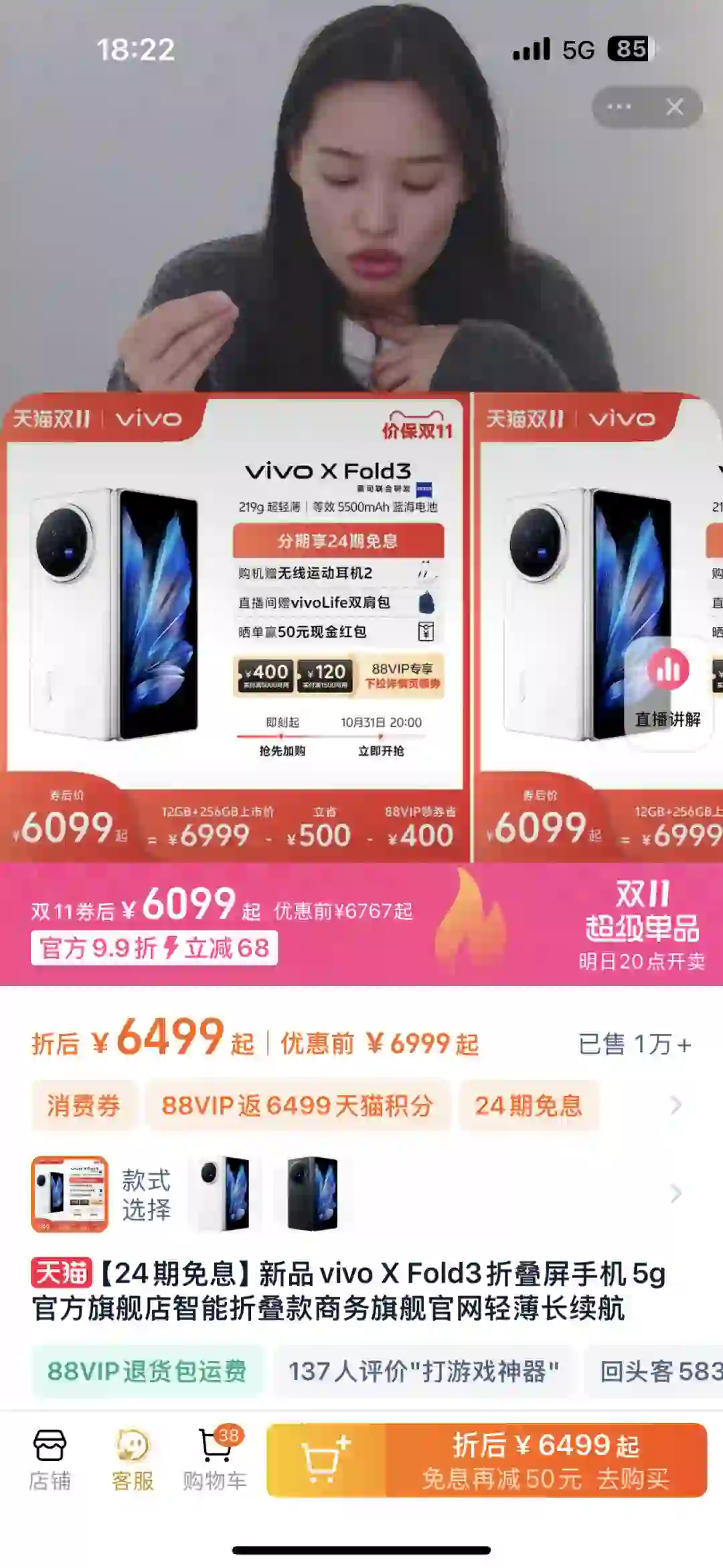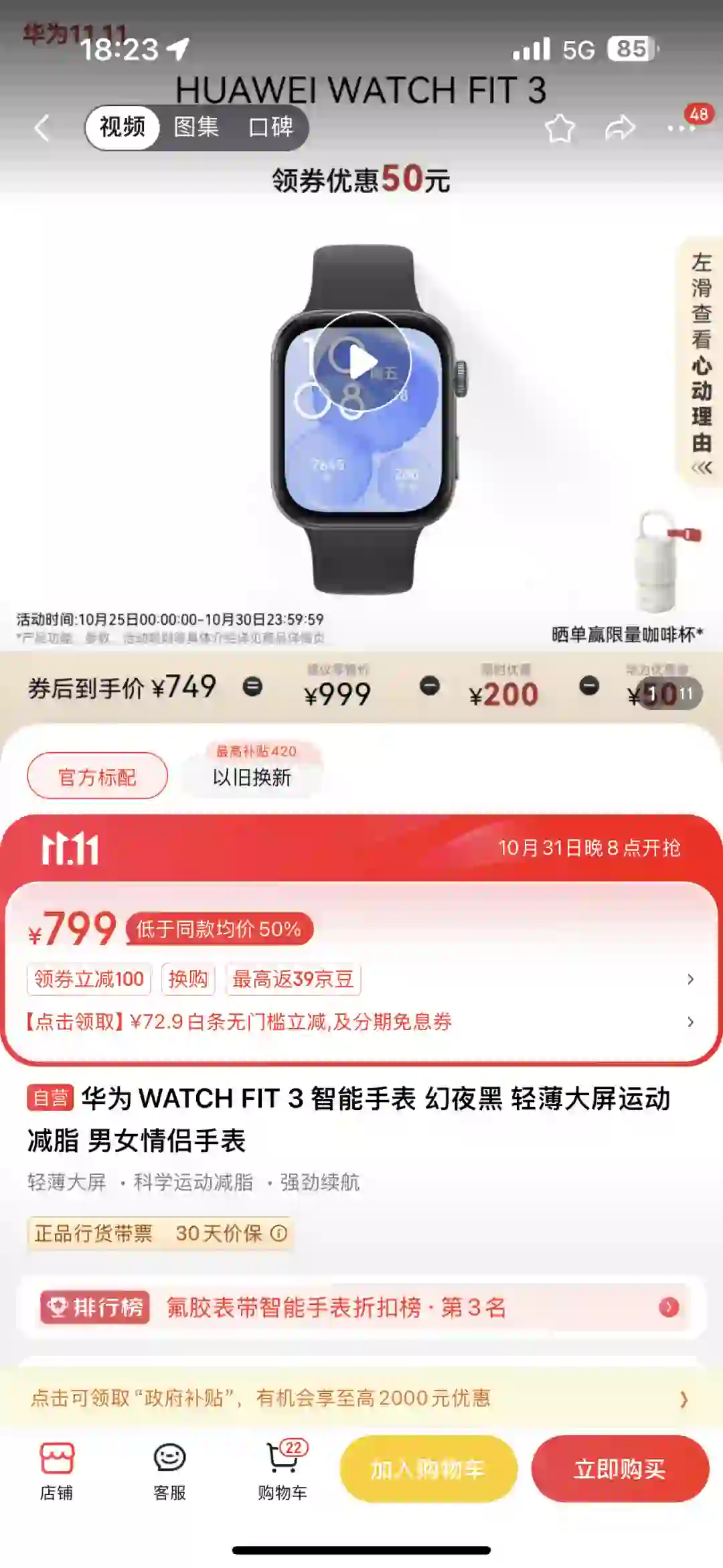 其他的像 vivo折叠屏(目前美丽价是6099),华为手表fit3预计600不到可拿下!