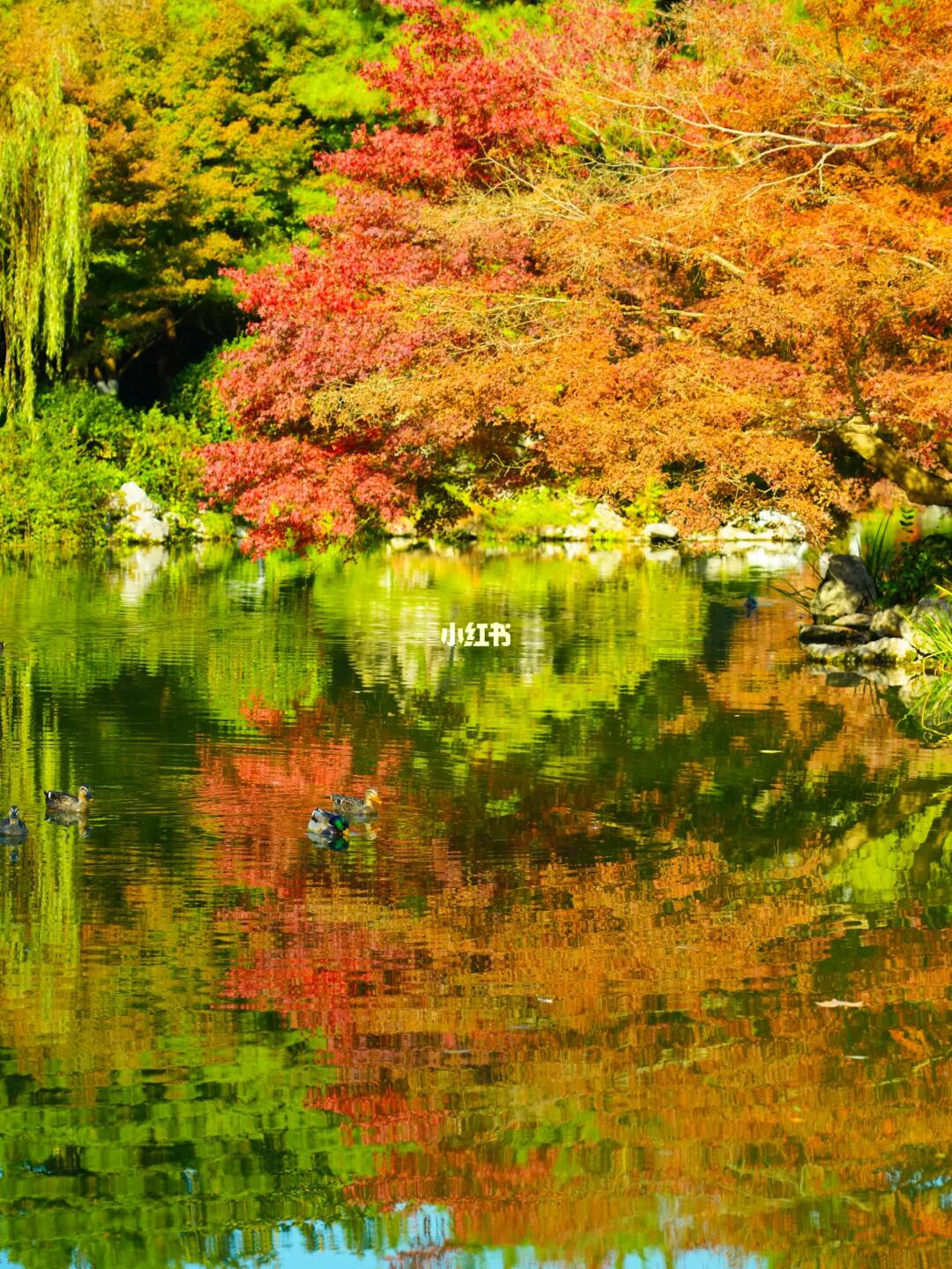 今年的红枫开的很好,里面可以喂鱼,喂鸳鸯,园内的蒋庄不要错过