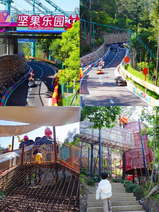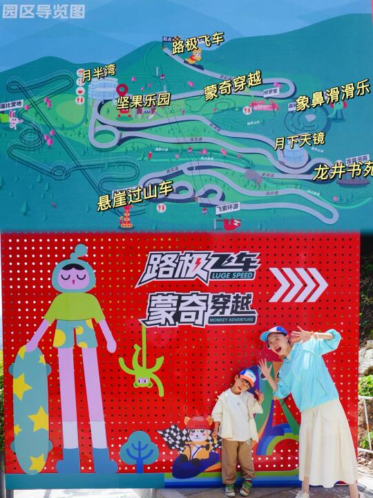 停车场-坐景区大巴车到景区口(6分钟)-坐摆渡车上山-月半湾-路极飞车-悬崖过山车-摆渡车去月半弯-坚果乐园-梦奇穿越-织梦营-象鼻滑滑乐-月下天镜-龙井书苑-坐摆渡车上山-路极飞车
