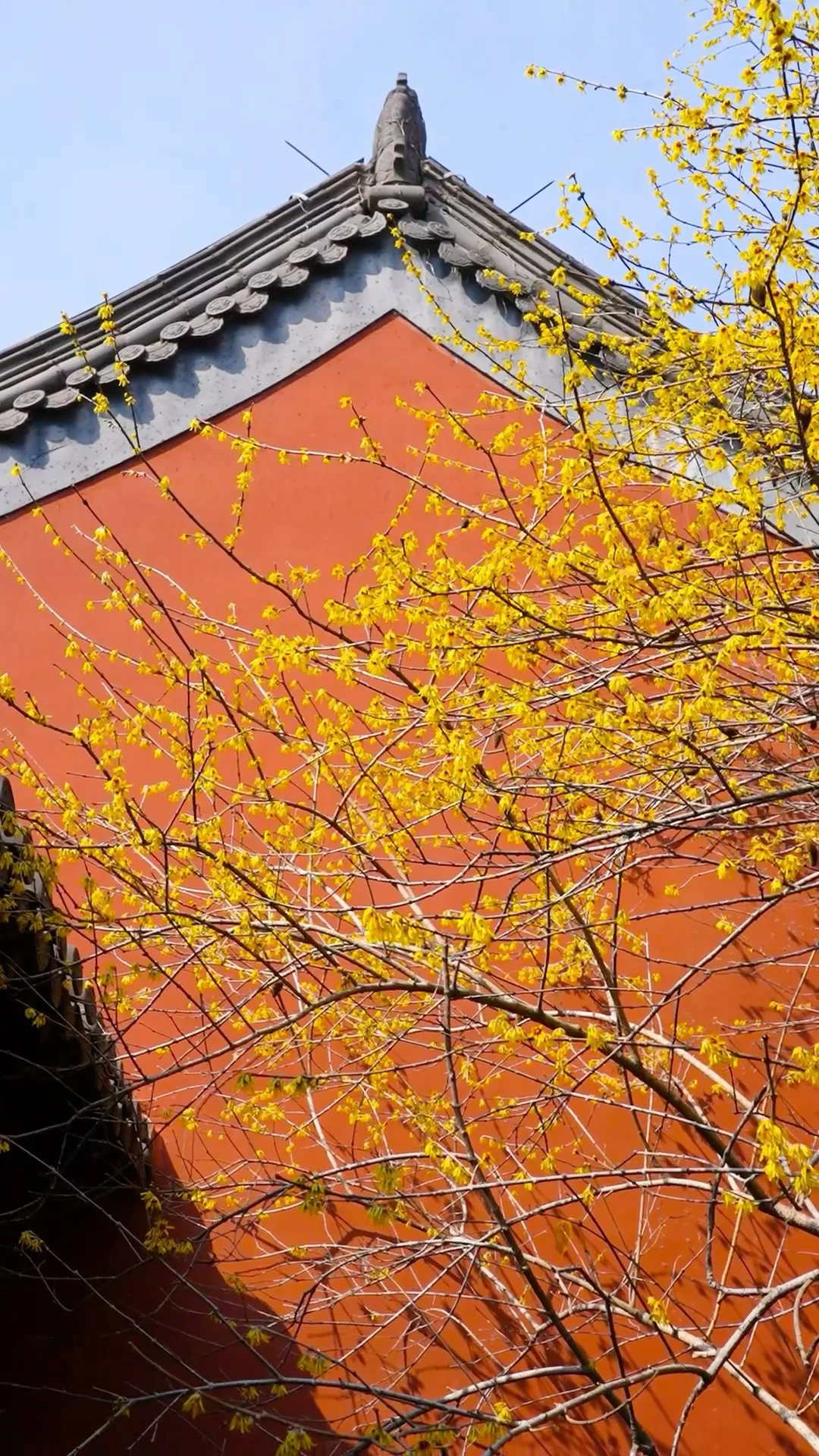 建于后唐,宋风寺庙,黄墙梅花很是漂亮