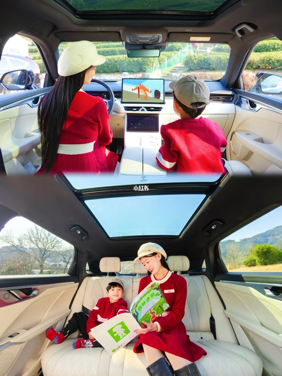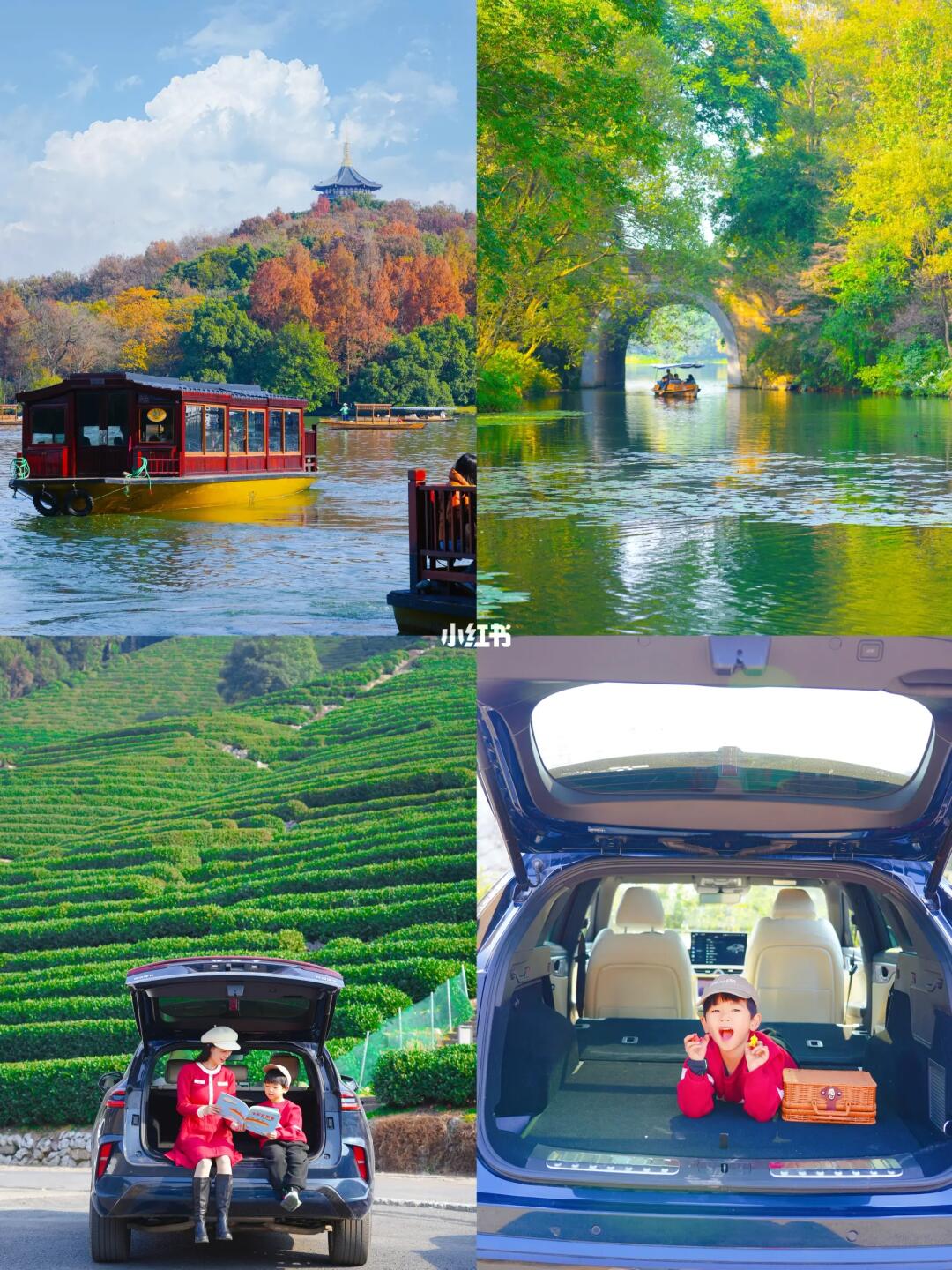 全新升级的智能座舱,车内空间很宽敞不说,后排放倒还能秒变可移动的大床房,累了可以躺在后排看西湖和茶山美景,很惬意