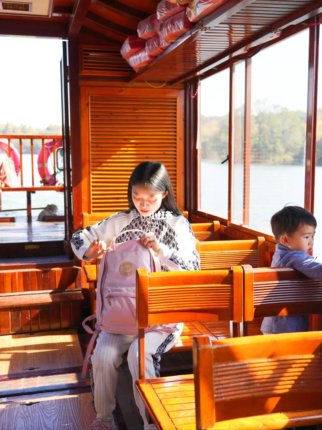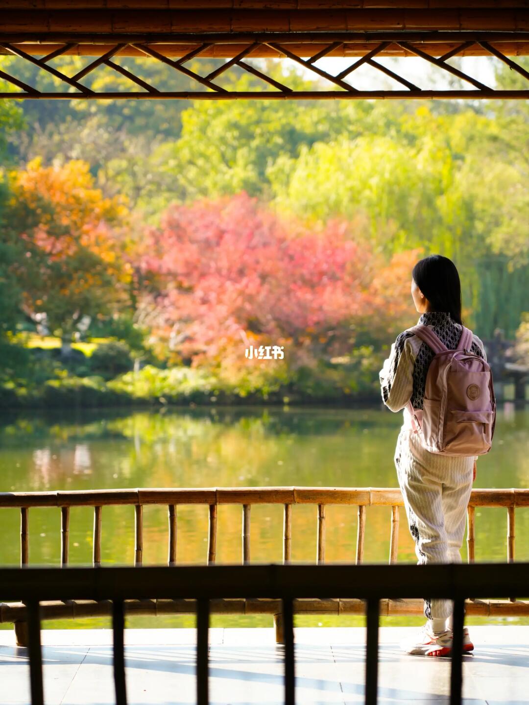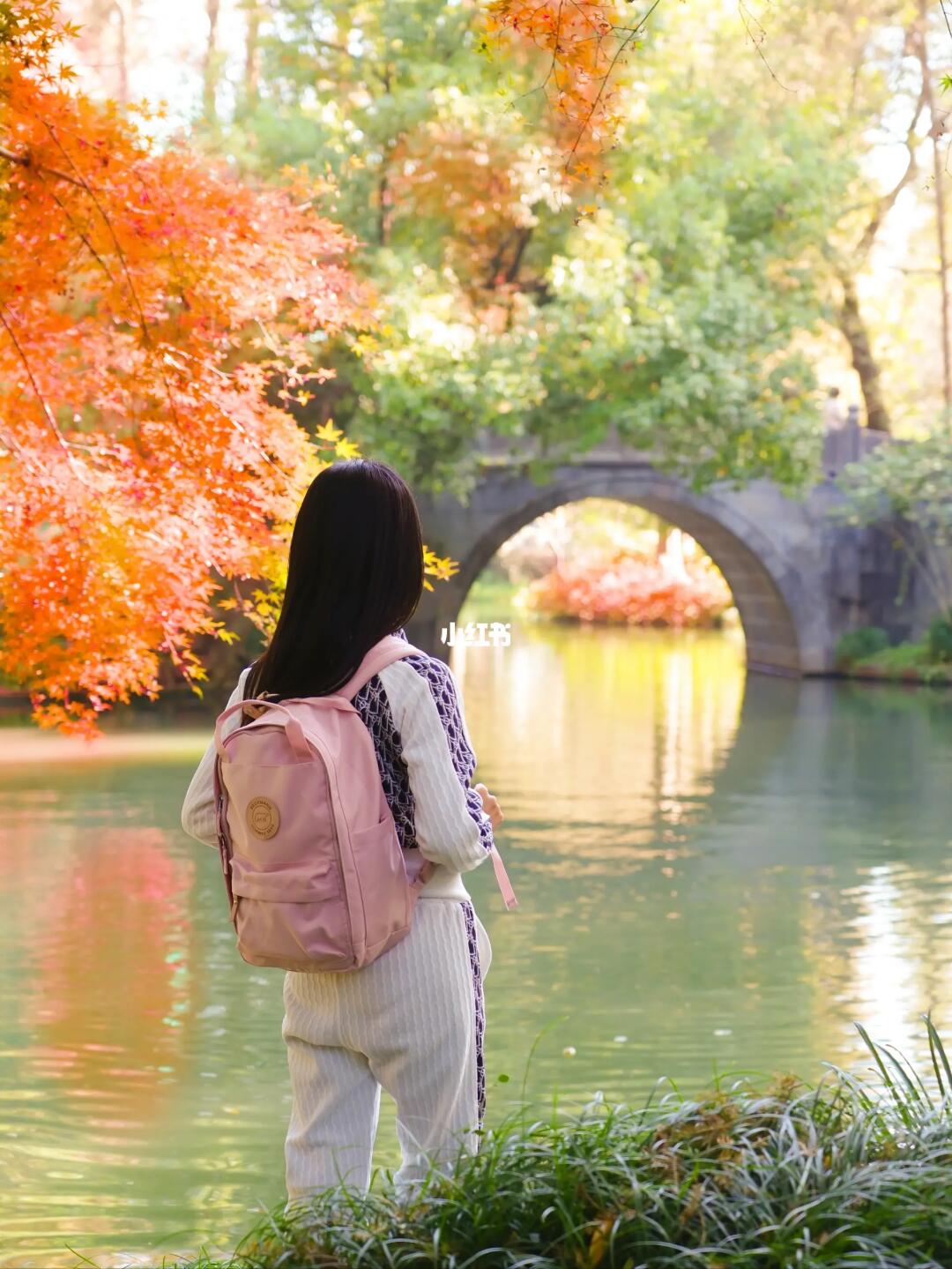 选的粉色背包,颜值高,和秋日的西湖太配了