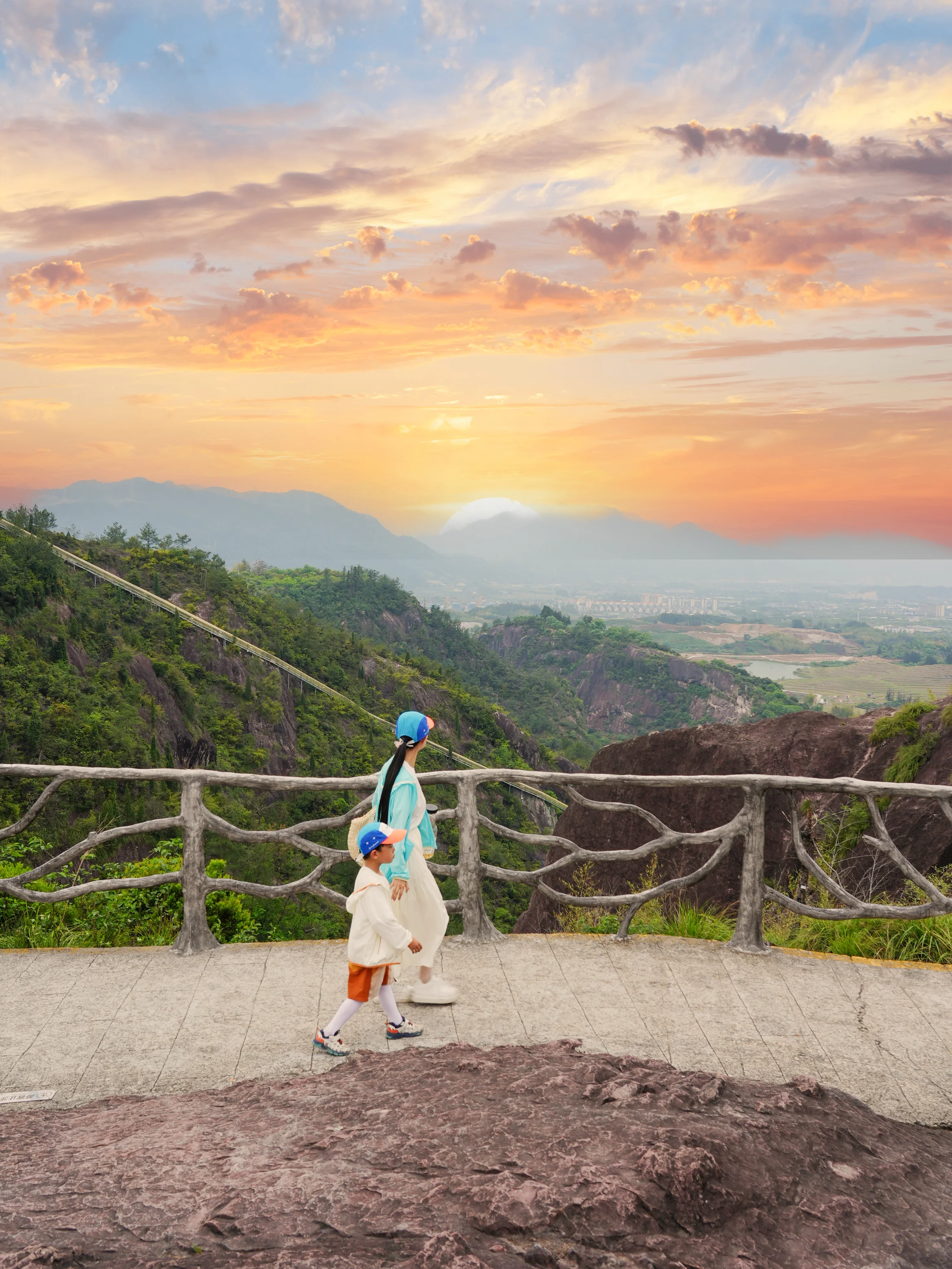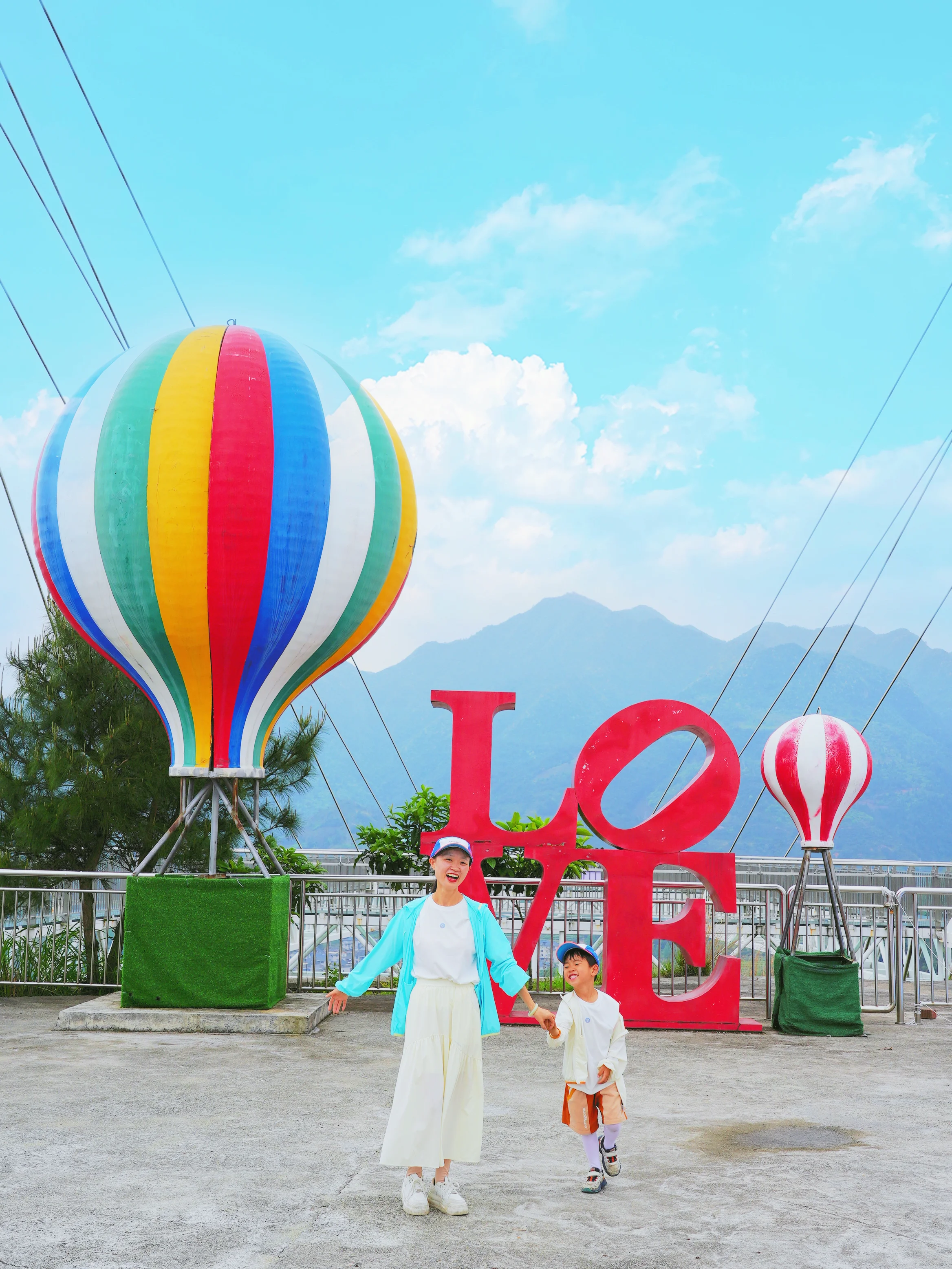 [一R]夏天天气炎热,徒步游玩建议和我们一样穿舒服透气的亲子装,外面搭一件好看的防晒衣