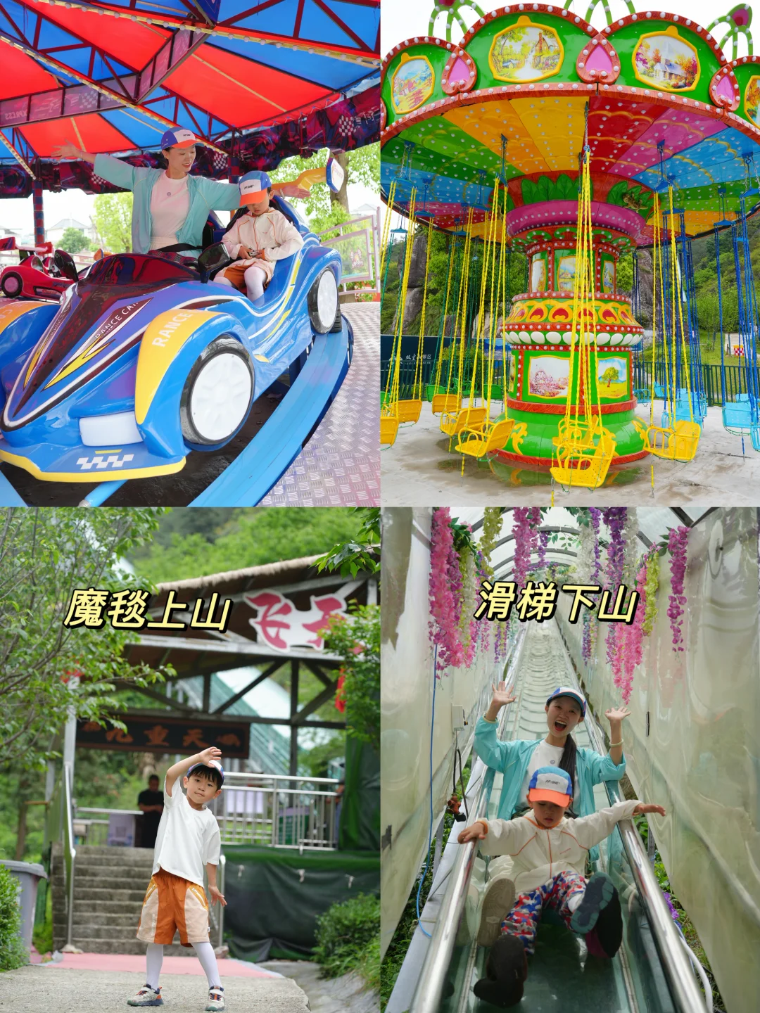 有魔法飞车,旋转飞椅等,也可以带娃体验山地越野车,在山野之间感受速度与激情