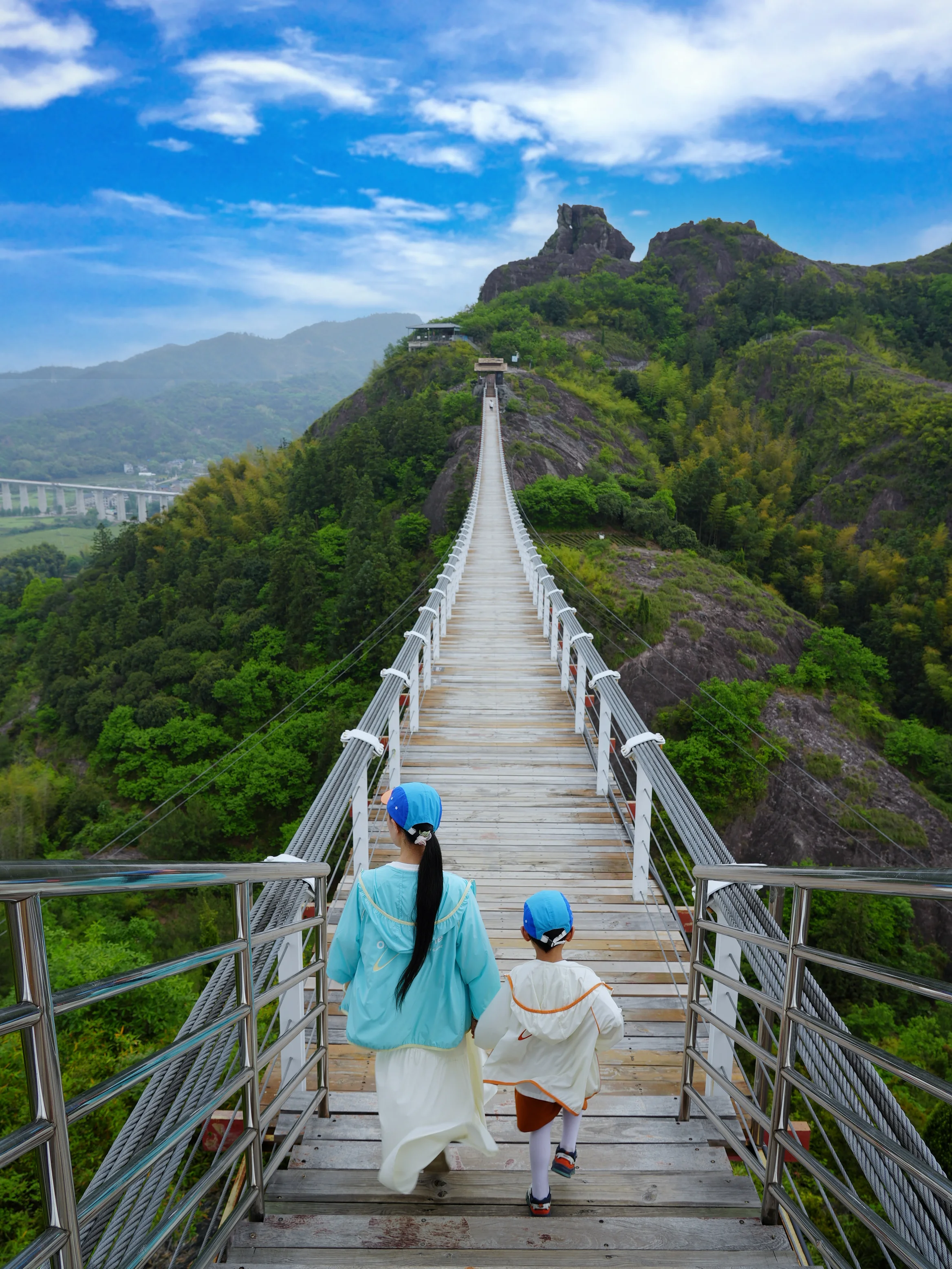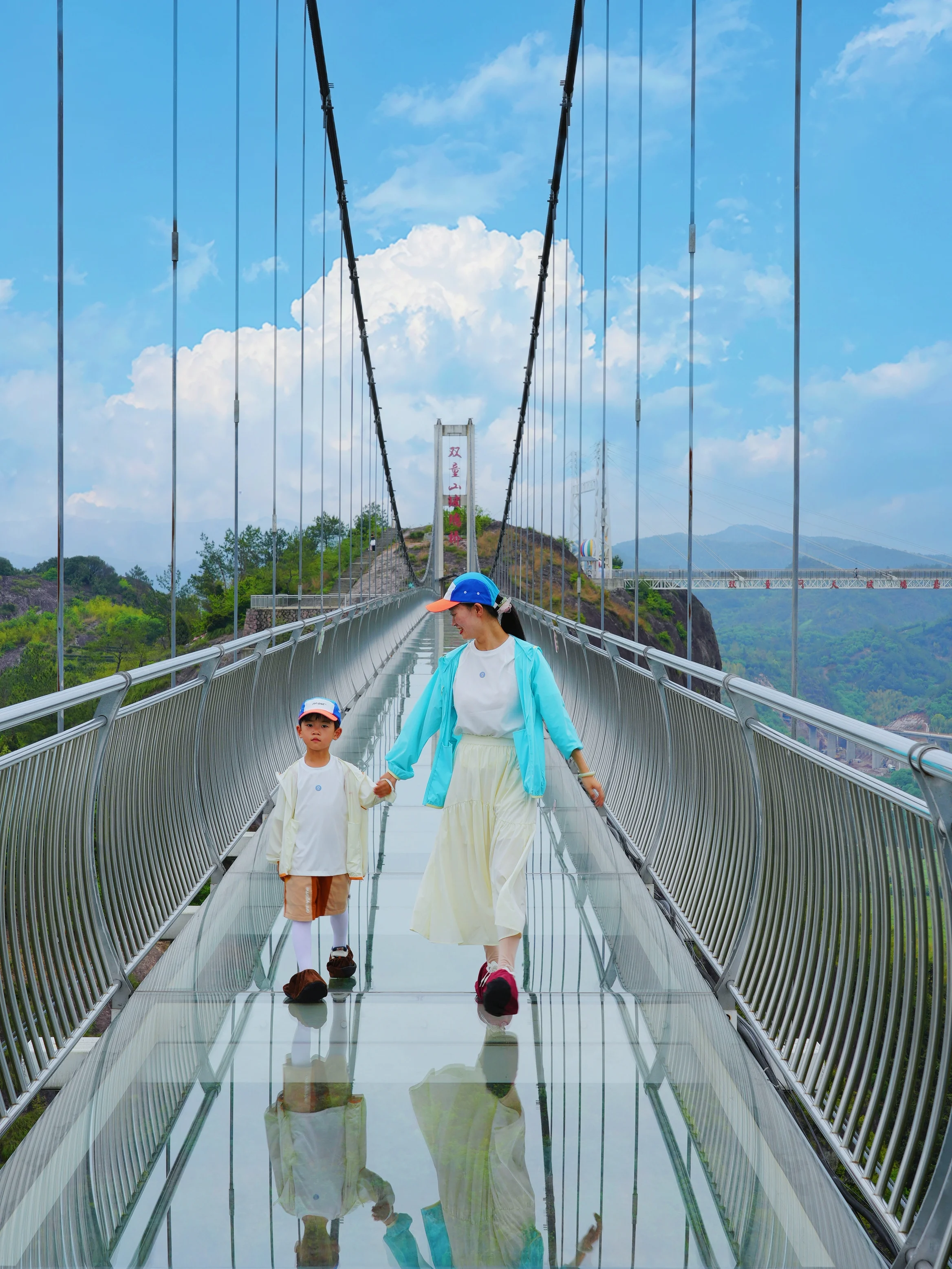 全透明的玻璃桥,置于两山之间,可以俯瞰松阳全景