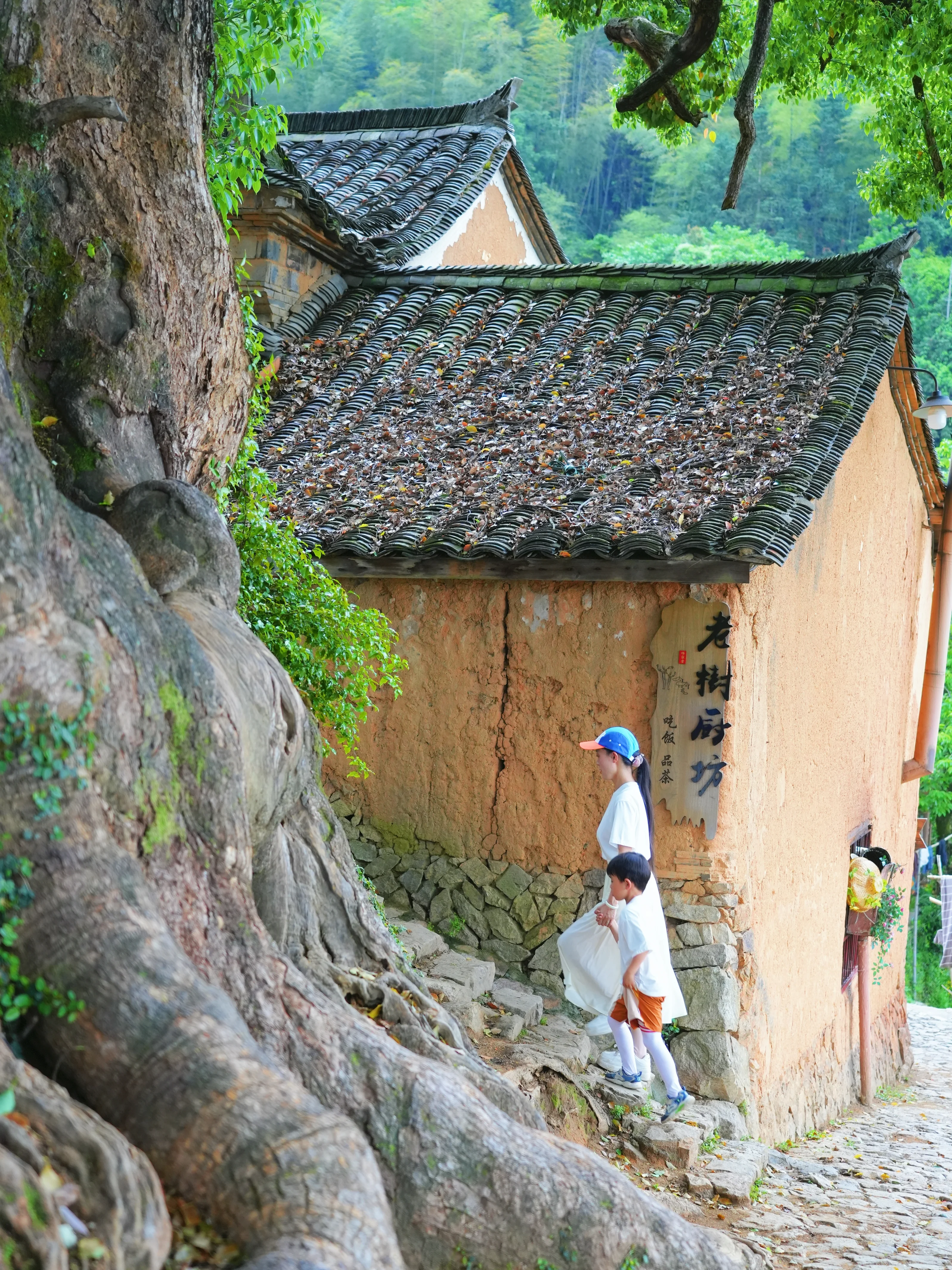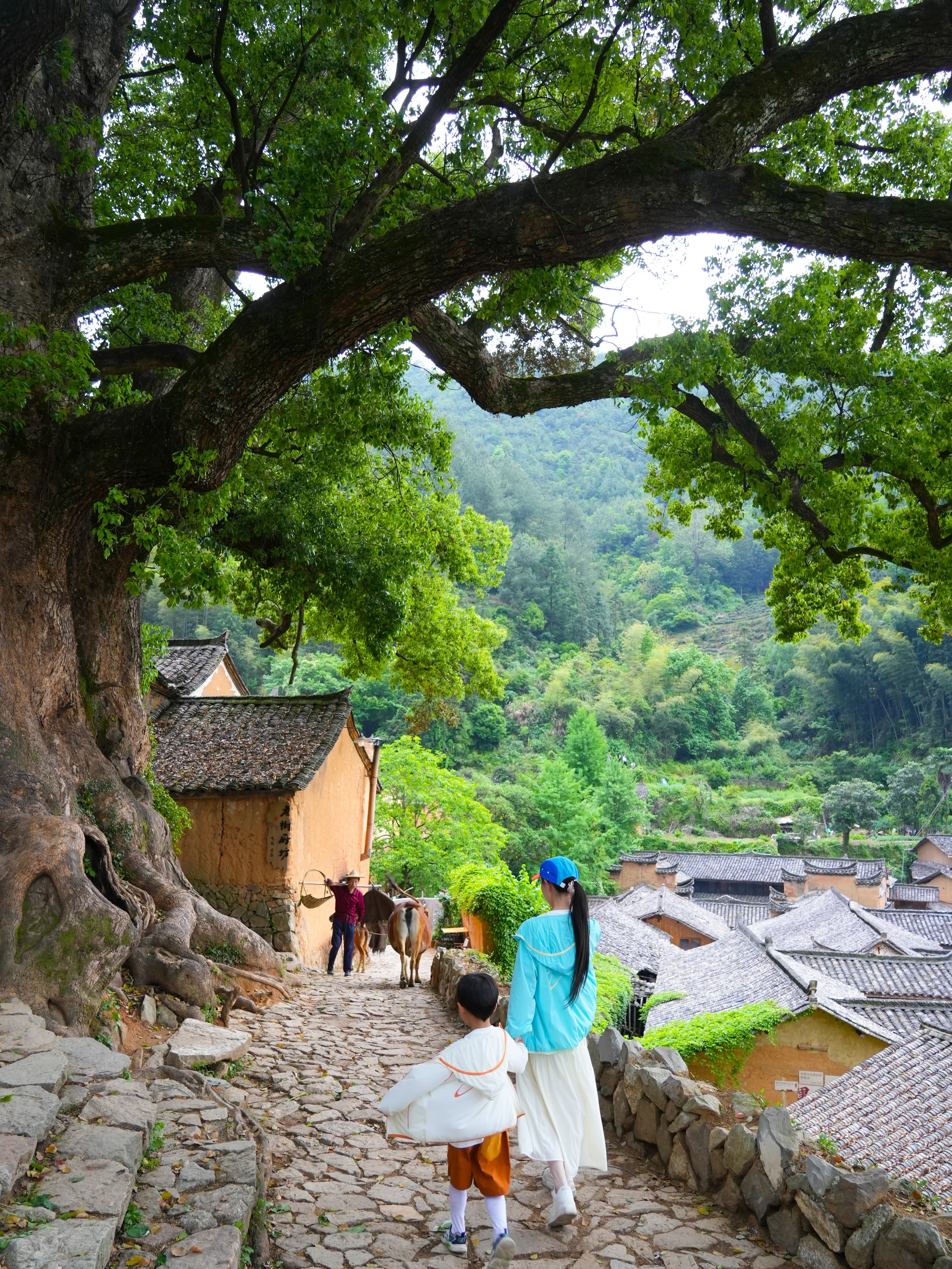 村口巨大的夫妻树,运气好还能看到老汉牵牛的场景