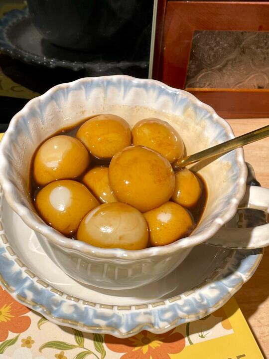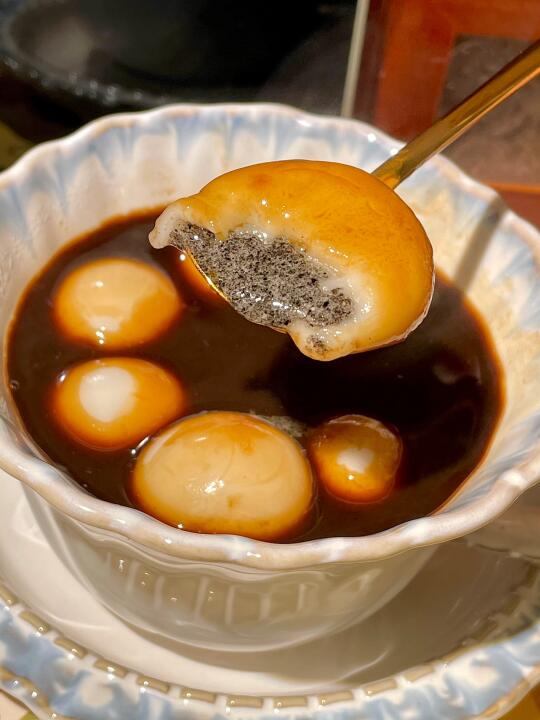 黑咖加上黑芝麻馅汤圆! 黑咖苦中和汤圆的甜,吃起来一点都不腻! 还带着咖啡醇香,谁懂!!