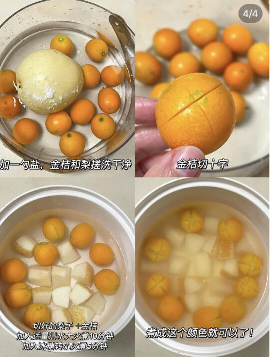 一到冬天嗓子就特别干,我妈都会给我做这个金桔雪梨汤!! 每次喝完就不咳了,感冒😷咳嗽这个也管用呢! 酸酸甜甜的,趁热喝完特别舒服!! 做法在图4,有需要的快去试试!