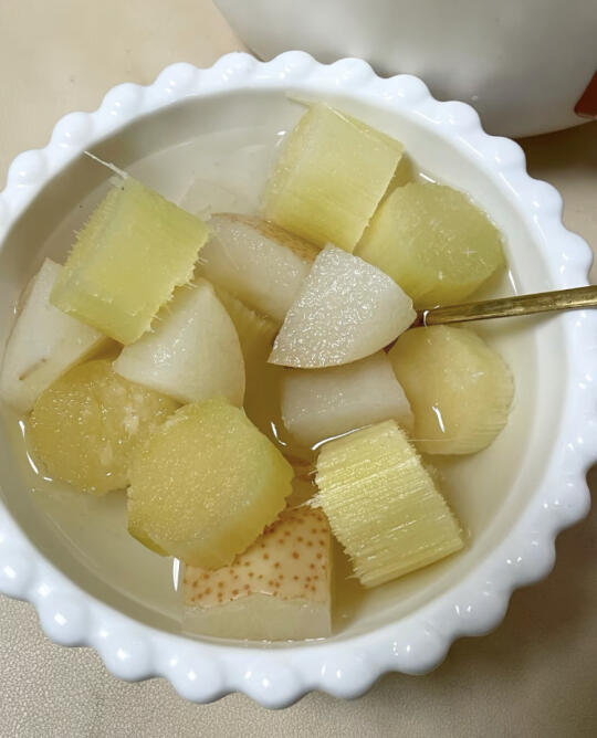 甘蔗雪梨汤!! 冬天喉咙干燥咳嗽…我妈就给我做这个喝!! 过年在家大吃大喝上🔥的喝上一碗完喉咙润润的特别舒服!!!! 咳个不停的姐妹真心可以试试!!