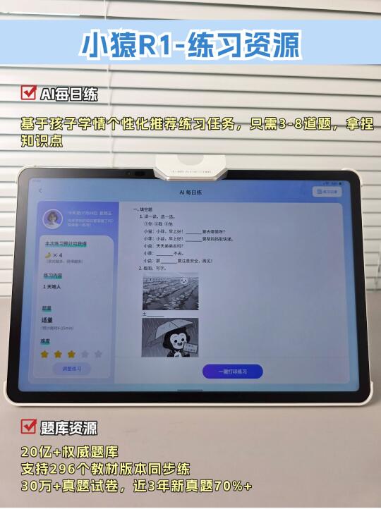 如果你想让孩子实现学练闭环,可以选小猿学习机RI,有AI学情诊断,适合查漏补缺。