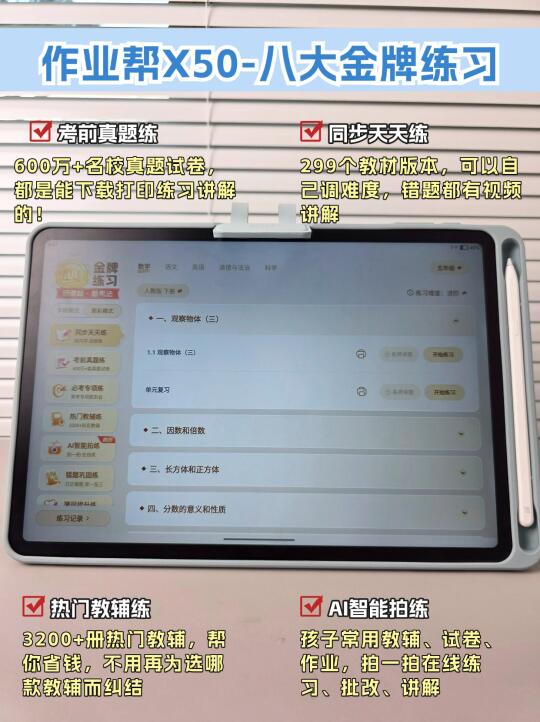 如果你是工作繁忙、懒得搜罗真题,没时间辅导孩子的家长,作业帮X50的金牌辅导+金牌练习很值得入手;