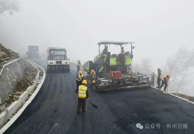 10月15日,记者在台怀镇南坡村的施工现场看到,沥青摊铺机缓缓推进,滚烫的沥青均匀铺洒在路面;压路机紧随其后反复碾压,确保路面平整坚实;运输车辆穿梭不息,机械轰鸣声此起彼伏,工人们各司其职紧张作业……共同勾勒出一幅动感十足的金秋建设画卷。