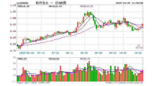 10月28日,截止午间收盘,软件龙头ETF(159899)涨2.03%,报0.955元,成交额3604.37万元。软件龙头ETF(159899)重仓股方面,科大讯飞截止午盘涨2.23%,同花顺涨3.33%,金山办公涨8.25%,指南针涨1.86%,恒生电子涨0.43%,润和软件涨0.00%,三六零涨1.14%,拓维信息跌1.19%,用友网络涨3.30%。