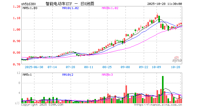 10月28日,截止午间收盘,智能电动车ETF(516380)涨0.67%,报1.055元,成交额165.03万元。智能电动车ETF(516380)重仓股方面,宁德时代截止午盘涨1.51%,比亚迪涨0.15%,立讯精密涨0.08%,汇川技术涨0.23%,豪威集团涨3.09%,长城汽车涨0.39%,科大讯飞涨2.23%,长安汽车跌0.63%,三花智控涨4.24%,亿纬锂能涨2.93%。