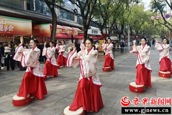这场穿越秀以多点位情景歌舞为核心,将古代文化与现代元素巧妙融合。古筝曲《十面埋伏》悠扬响起时,《大秦勇士》情景歌舞即刻登场,秦朝勇士随激昂乐曲起舞,再现大秦将士的豪迈;汉风《盘鼓舞》中,舞者在鼓上轻盈跳跃、旋转,用刚柔并济的动作诠释汉代舞蹈之美;古筝与双人舞蹈搭配的“古筝舞蹈秀”,则将古典乐与舞的雅致展现得淋漓尽致。