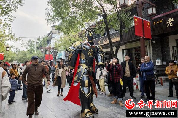 各界新闻网讯(记者韩永国)10月25日,一场跨越秦、汉、唐的沉浸式文化盛宴在咸阳老街热闹开启!南阳门、中山街、学道门巷等点位先后上演“青春遇见咸阳老街”大秦汉唐古风穿越秀,邀市民游客在歌舞与科技碰撞中,触摸千年古都的文化脉搏。