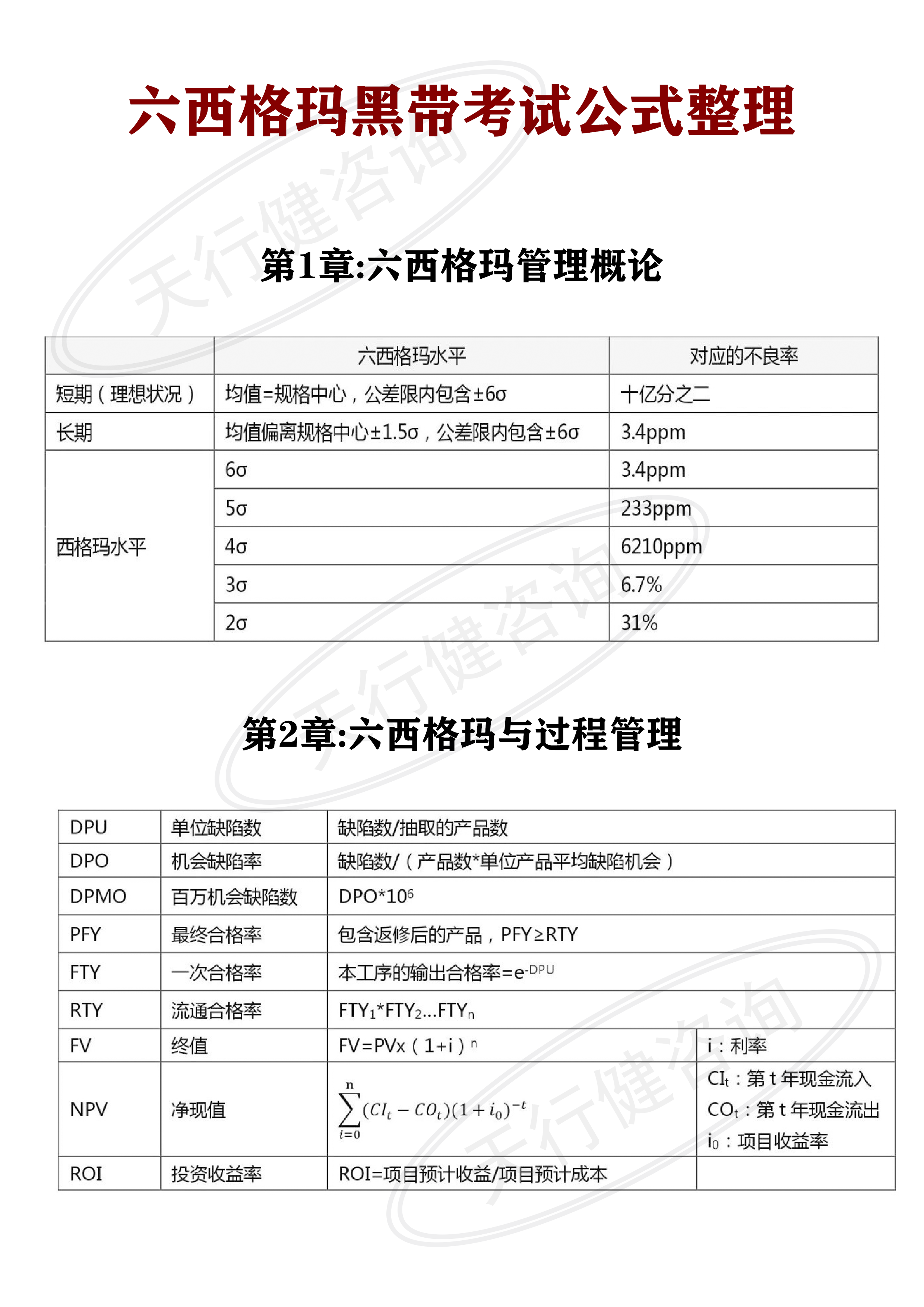 六西格玛黑带考试公式资料整理——过程管理部分核心公式整理