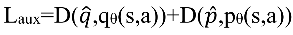 辅助损失L_aux用于那些具有预定义语义的预测,即动作价值(q)和辅助策略预测(p),具体如下: