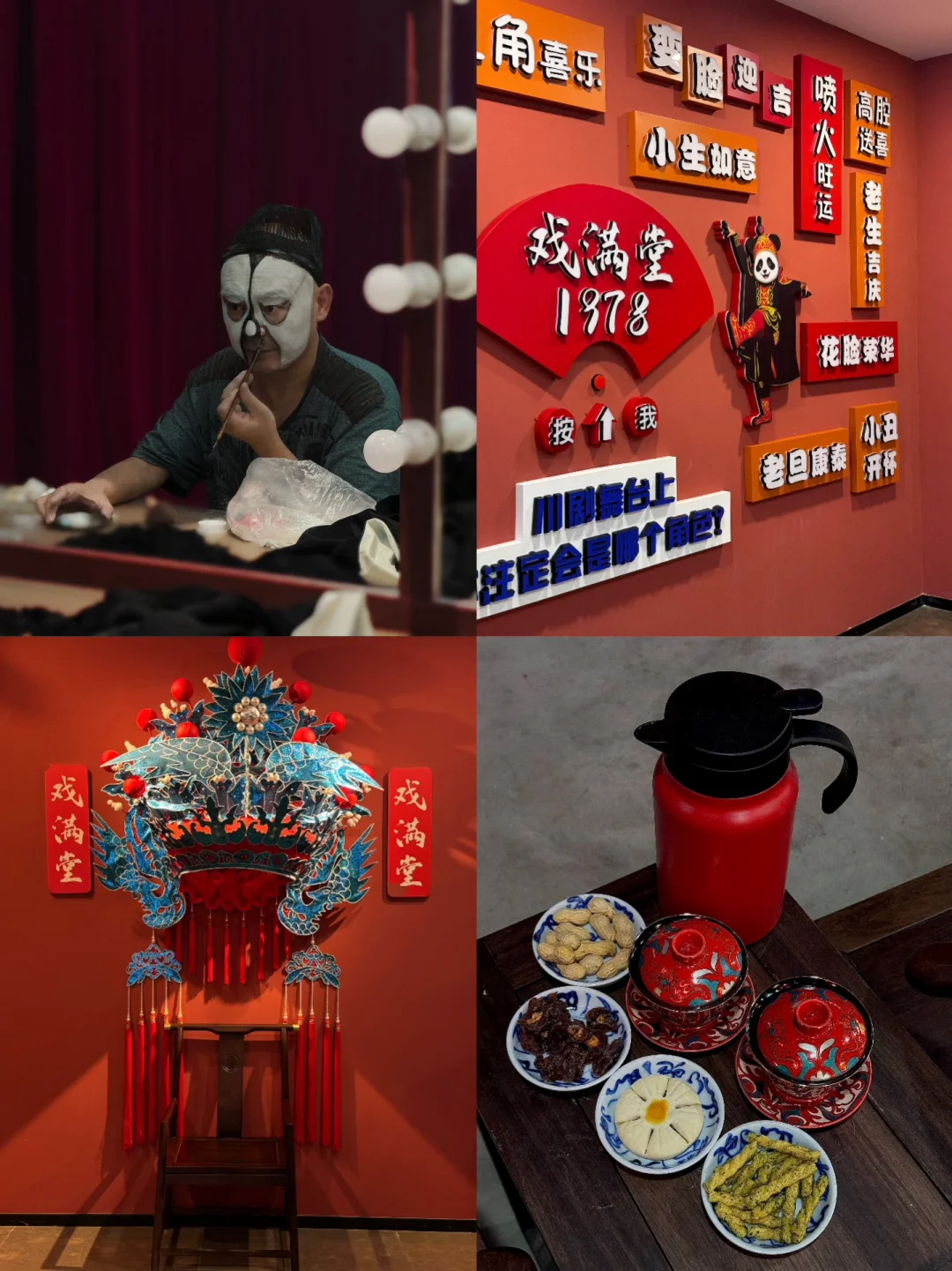 来成都旅游建议看了这场剧再离开。 · 一碗盖碗茶、一场川剧,感受下独属于成都的慢节奏,不紧能看到经典的变脸 吐火 皮金滚灯,扈家庄,四大美女,三岔口,长嘴壶茶艺表演,还能看到川剧版的《霸王别姬》看的是意犹未尽。 · 最喜欢演员和观众的互动环节了,现场氛围非常好,全程一小时一点也不枯燥。来成都旅游除了看大熊猫,逛春熙路、太古里、宽窄巷子,一定要来感受下国粹川剧的魅力真的很值👍 · 首推外地朋友来这家新开的👍 🏠戏满堂 📍成都市春熙路群光广场10楼1001 🕐演出时间:1h/场 14:00--15:00 16:30--17:30 19:30--20:30