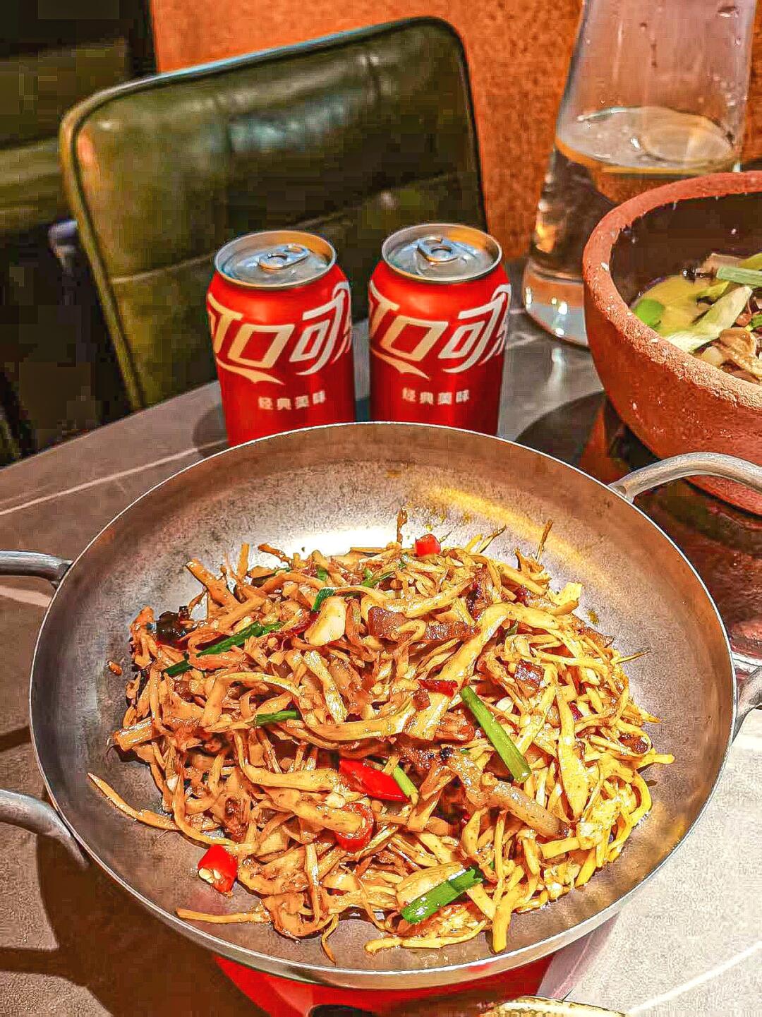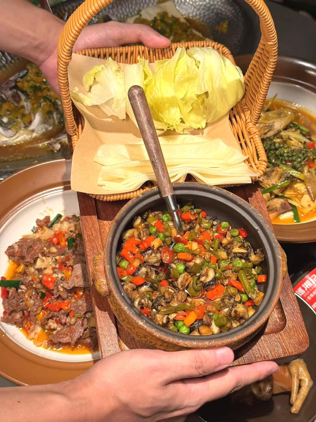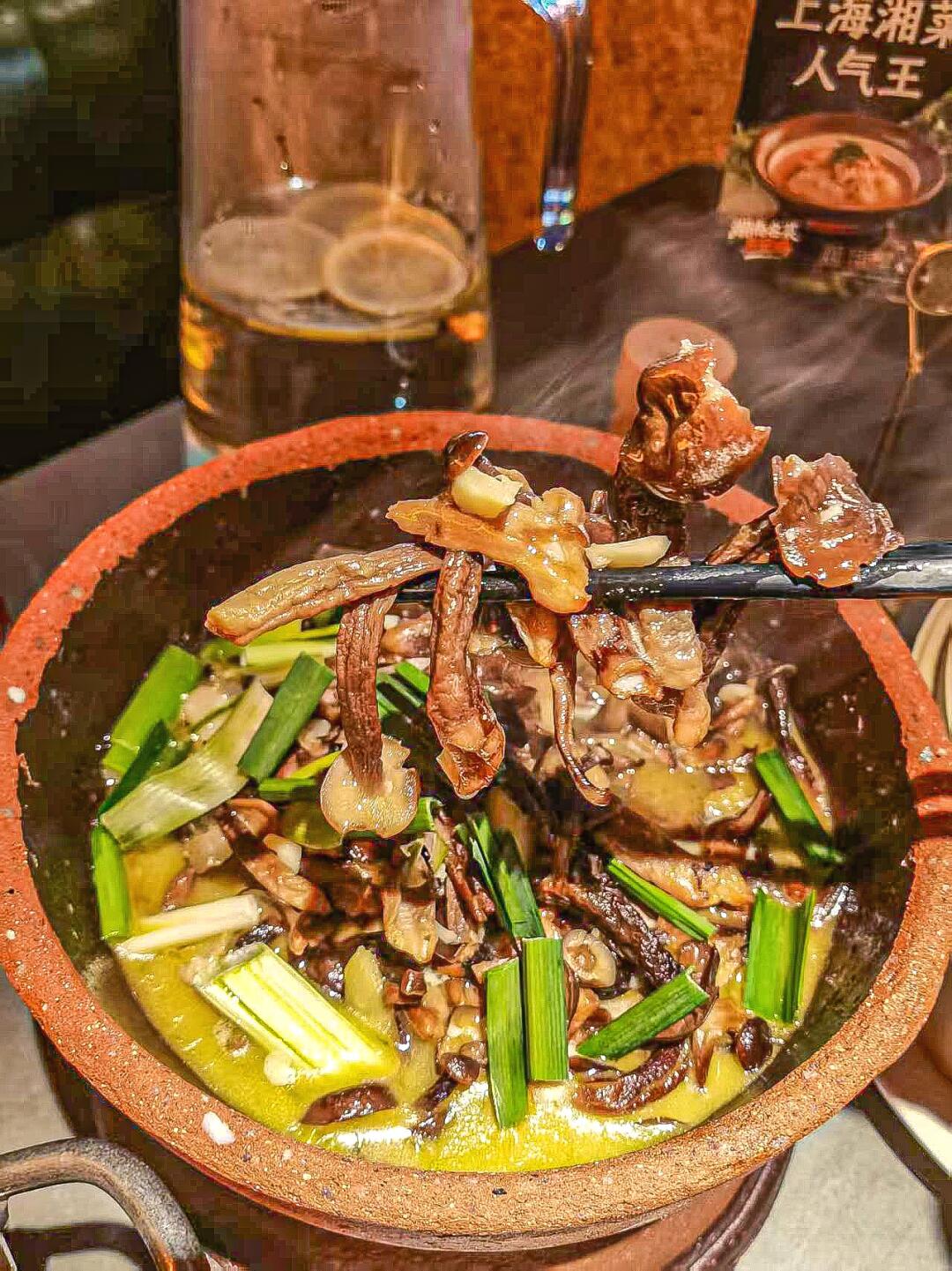 现点现烧锅气十足,端上桌滋滋作响,香气四溢,湘西口味正宗,鹿茸菌太鲜美了吧~😜