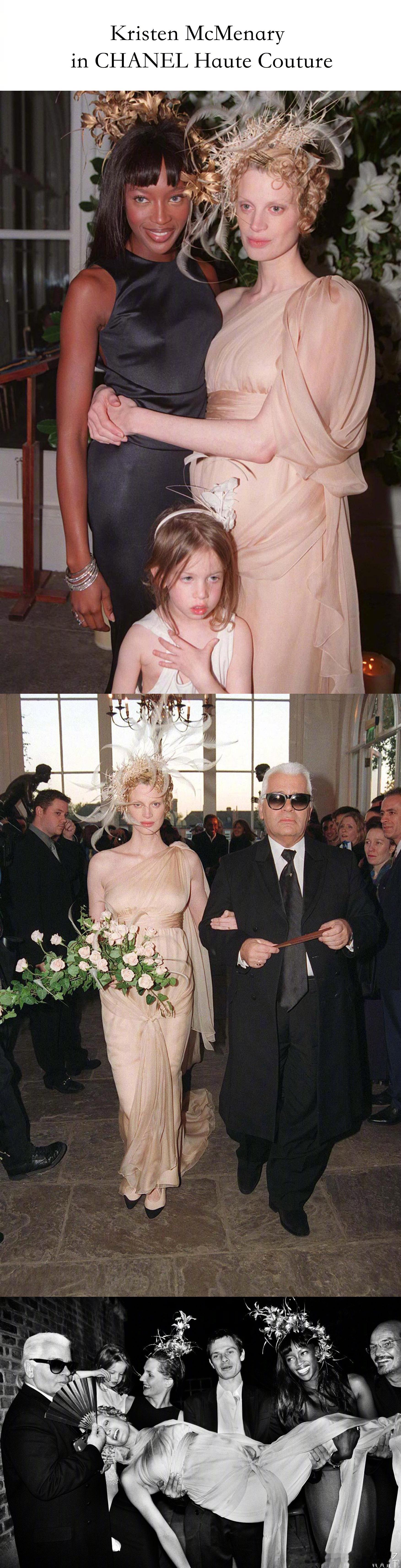Kristen McMenary 排场也非常隆重,Karl Lagerfeld 不止亲自设计婚纱,还牵着她的手走上婚礼红毯,风光无限。