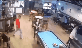 “no作no die”这句话在哪里都不会过时 最近台球运动一下就又火了起来,光光我们小县城就一夜之间开了二十多家台球室,而且收费还不低,每小时45元,如果请陪练还有另算。 下面这个在台球室的视频,应该不是国内,只见一男一女在一张台球桌上玩,女的不知道是陪练员还是男的女朋友,女的身材非常好,前突后翘,一身紧身衣穿在身上让她的身材更加火辣性感。 男的正准备开球,这时一个穿着红色T恤的男子来到身材火辣的女子后面,一只手摸向女子的屁股,然后做出非常不雅甚至夸张的动作,女子被红衣男子摸的时候还做了了拒绝的动作,而嘴巴里也明显说出了“no!”之类抗拒的话。 而和女子一起练球的男子就看不惯了,一句经典国粹喷出来后没没半点犹豫,直接一个箭步来到红衣男子面前挥拳就是一拳朝红衣男子的脸上击去! 仅用半秒,红衣男子就被KO在地上没了反应!发现冲突,旁边的人赶紧过来劝阻,避免事态进一步恶化。 台球运动是一种非常优雅绅士的运动,因为不需要太多的高强度运动,而且在室内,所以很多人都喜欢,但毕竟是公共场合,什么样的人都有。 视频里的红衣男子就是一种范例,不知道他是有很恃还是酒喝多了,还是一惯性格如此。最后被黑衣光头男的教训应该可以让他好好的反省反省了。 其实不管是公共场合,还是私人场合,个人的行为举止还是得注意,因为意外往往总是在一瞬间发生。生活中因为自己的不良习惯和一些不好的动作行为最后吃大亏的例子也是比比皆是。文明运动文明行为才是创造和谐社会的基础。
