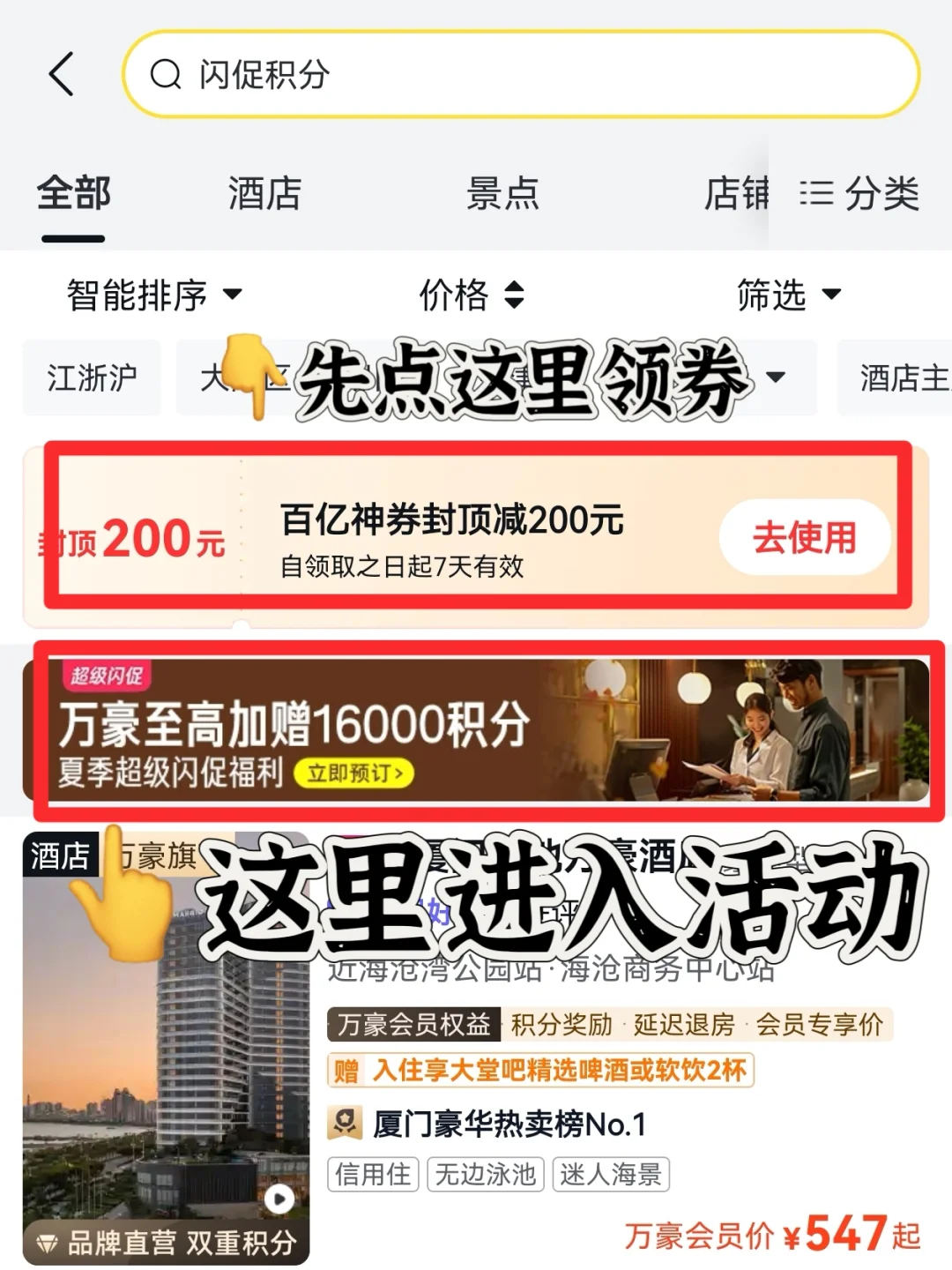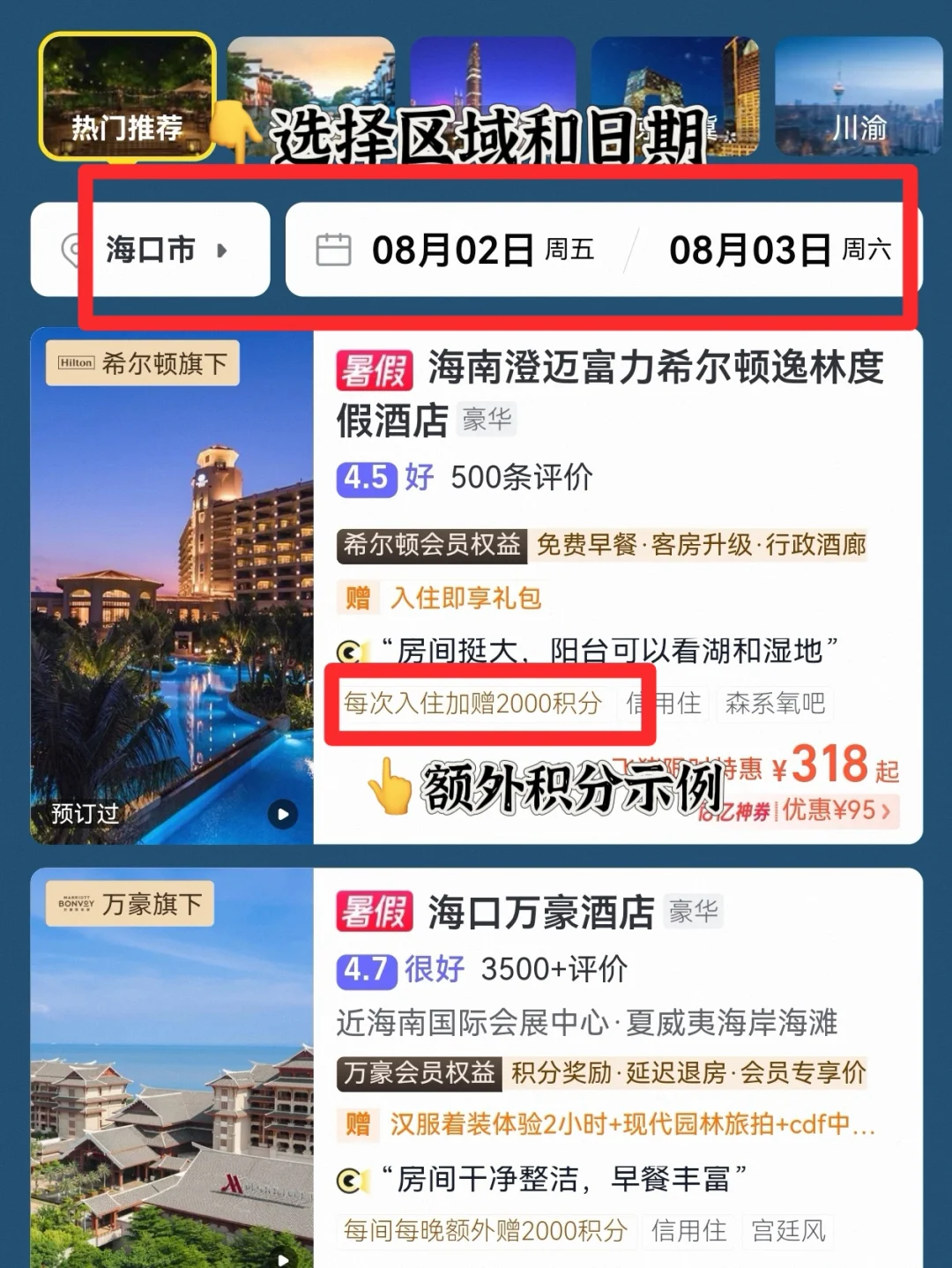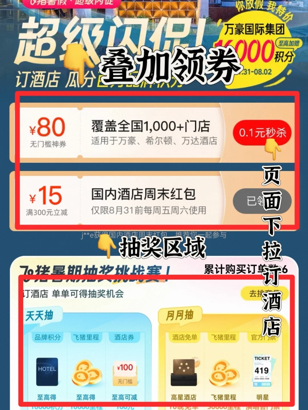 ❗️❗️❗️值得一提的是这家我是在飞猪上定的。我定万豪一般都会在官网或飞猪预定,但是飞猪作为万豪“第二官网”,有着和官网预定的同等待遇,不仅可以享受在万豪官网预定的房晚、积分、会员权益(行政酒廊、双早、延迟退房、升房),重点是在飞猪经常有闪促,比如最近推出的“暑期挑战赛”(6月28日-9月10日),预定酒店额外❗️注意是额外,至高返16000万豪旅享家积分。以海口丽思卡尔顿酒店举例,预定额外返1000万豪旅享家积分,以每万分500的价值来算,相当于额外返给你50元!积分当钱花,妥妥大羊毛。另外下单还可以参加天天抽品牌积分、飞猪里程、酒店券和月月抽酒店免单、飞猪里程、演唱会门票的活动,今天已经有小伙伴抽中了10000万豪旅享家积分。并且在飞猪预定酒店还可以获得飞猪积分,用来兑换免费的机场休息室、快速安检、接送机等,经常出行的小伙伴认准🐷家准没错了。