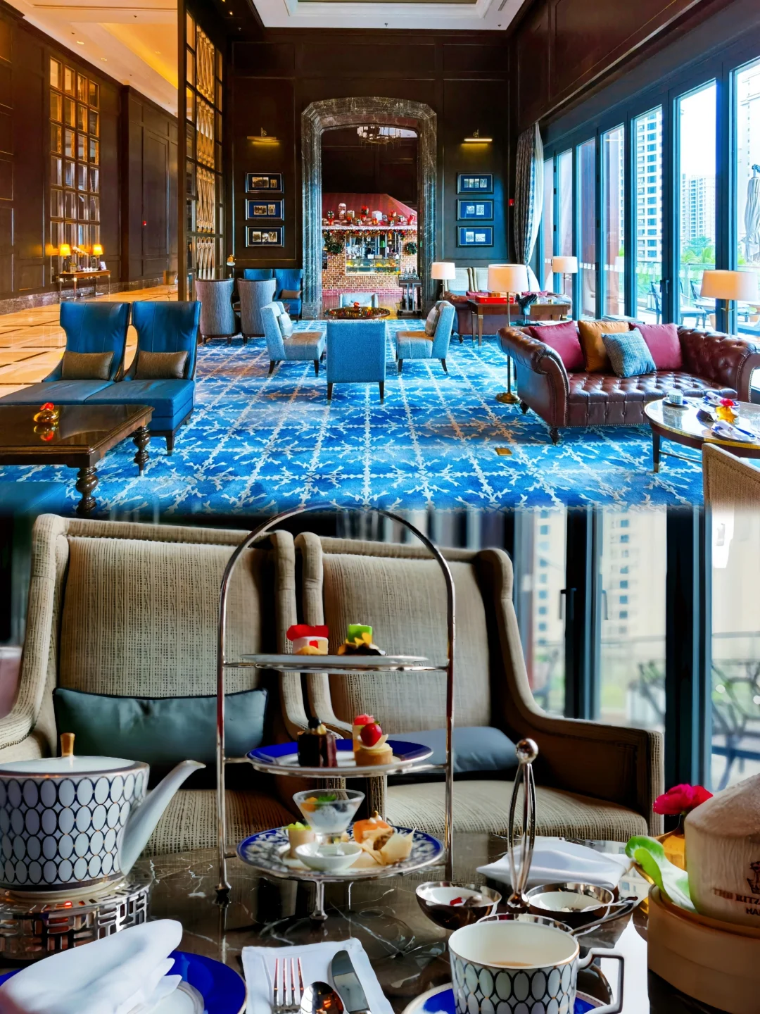 第二天的下午茶在行政酒廊用的,只认钱的丽思卡尔顿行政酒廊几乎没有人,当天下午我们一家人包场了。大堂吧的下午茶也非常漂亮,很出片。