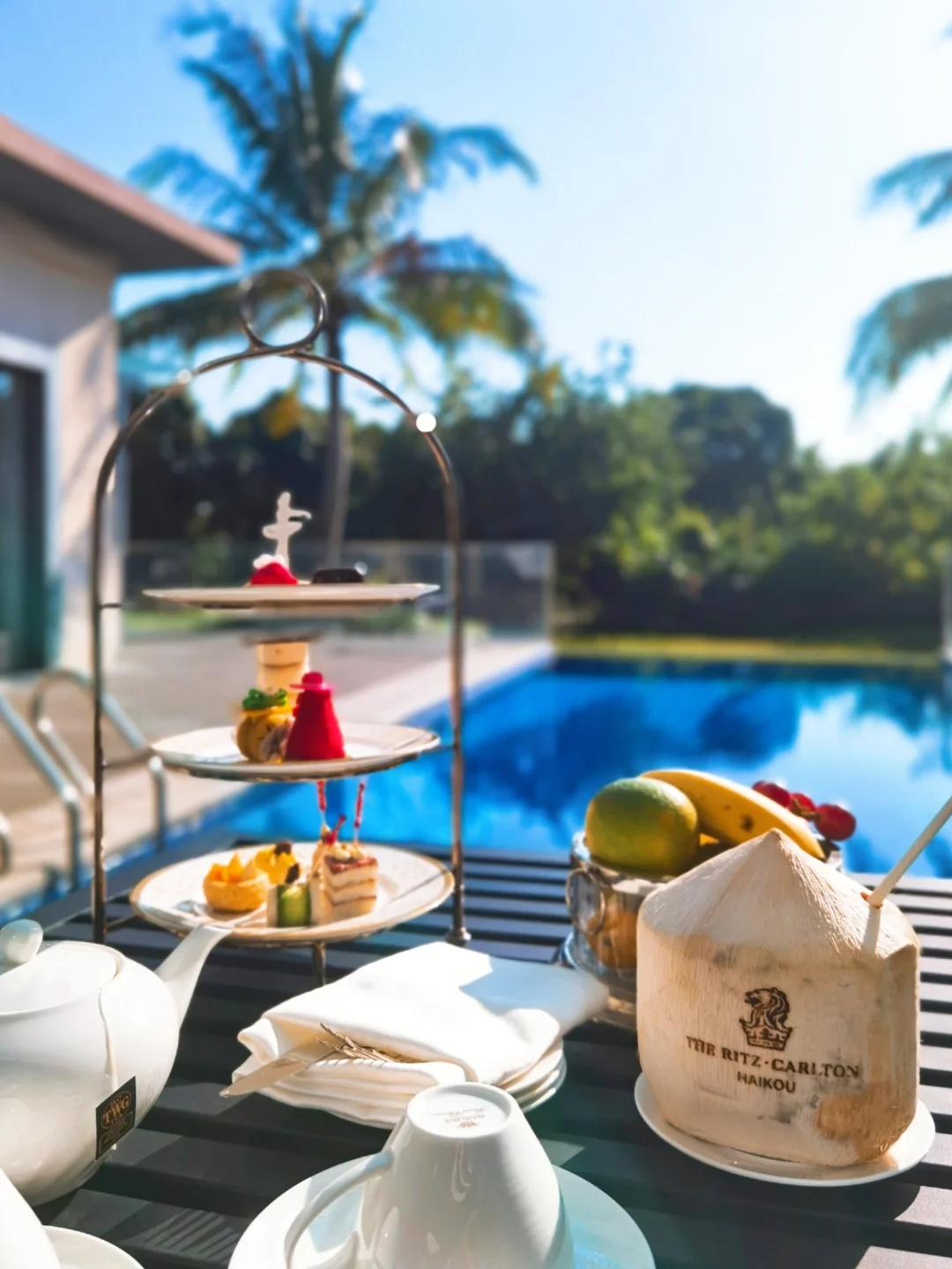 欢迎礼普普通通,但是别墅每天有一套下午茶,可以送到房间里,也可以在酒廊用。第一天选择在房间用的下午茶。minibar全免费,有旺仔牛奶,一天补充一次。卫浴用品用的丽思标配Asprey。这家别墅除了可以去行政酒廊,还可以去别墅俱乐部,父母当时在辟谷,所以没去。