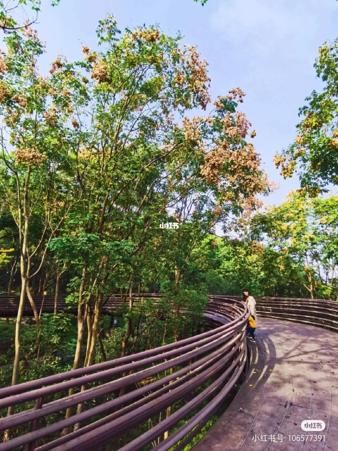 2.[打卡R]这里有一条绝美的空中长廊,拍照特别出片,桥两边种满了栾树,特别漂亮。