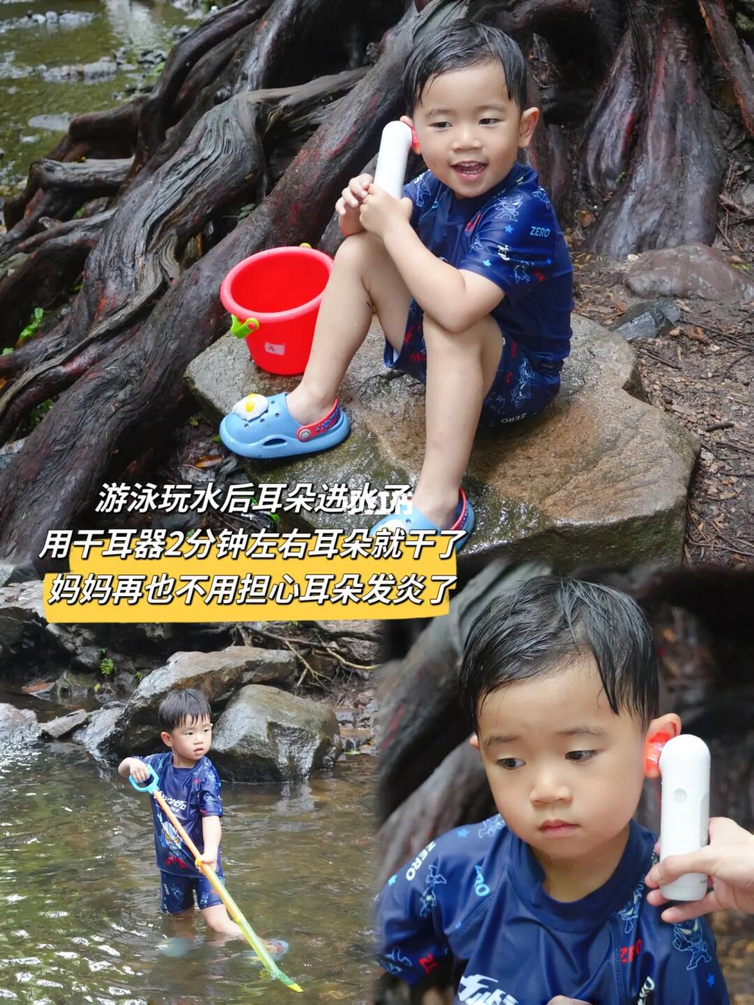 [三R]带多宝游泳玩水,我们要用水枪打水仗,玩得兴奋了,耳朵很容易进水,进水后真是不舒服,现在我们出门都会带上干耳器,小巧便捷,携带很方便,只要1-2分钟就可快速干燥耳朵,主要也没啥声音,多宝玩好水后会自己来干耳朵,也不抗拒,不会对听力造成损伤