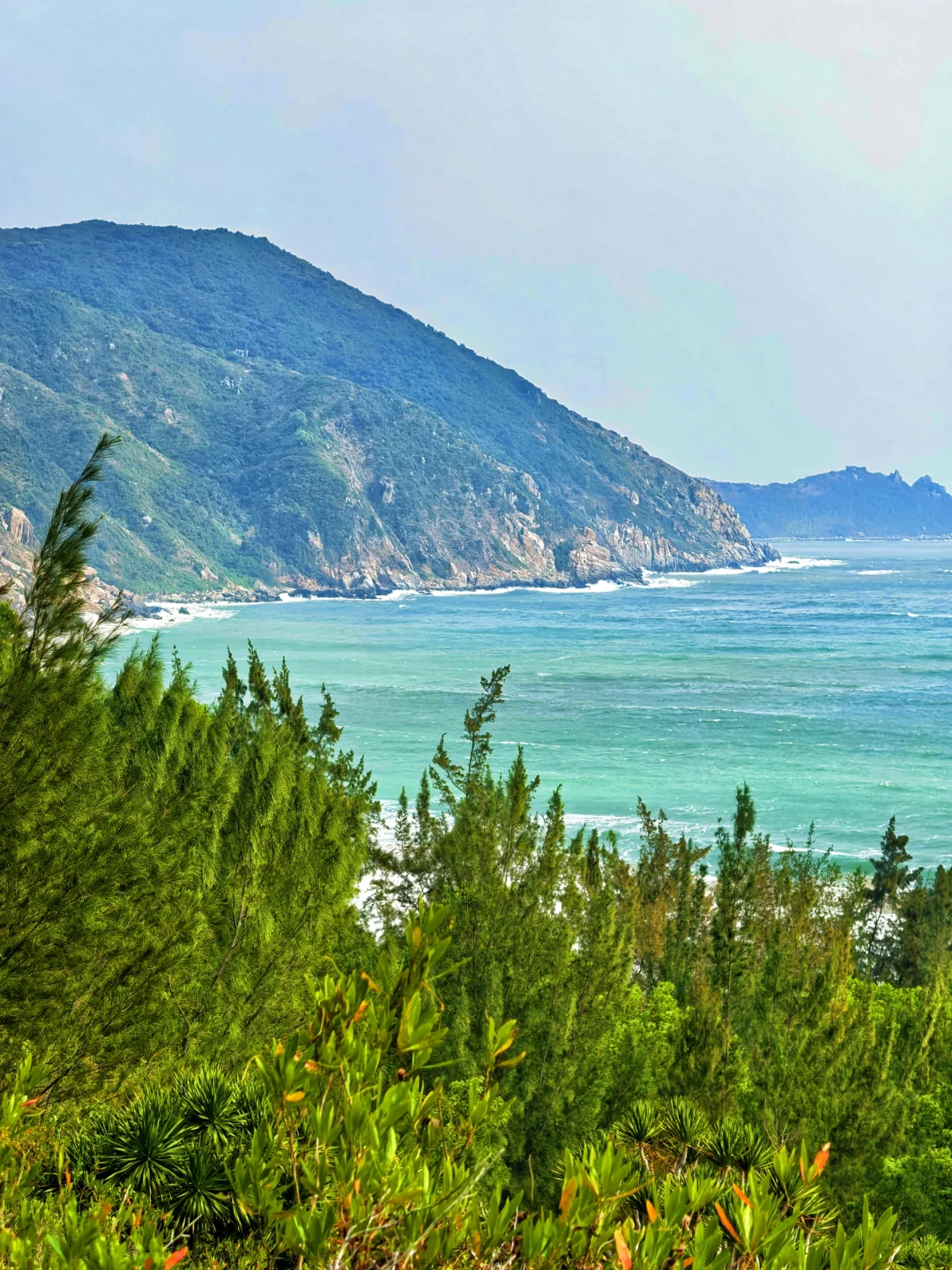 首先按照攻略走到p6的观景平台(很多攻略一搜一大把这里就不赘述了),往下走到海滩,左边可以拍观景平台(p4),右边可以假装冰岛黑沙滩(p1到3)。这时候不要原路返回,往前走上山翻过一个山头后就可以看到p7p8的无人沙滩,这个沙滩特别适合天气好的时候去,绝美。后从沙滩再往前上山返回会到达菠萝蜜种植园,种植园附近很多野生🐒群❗️