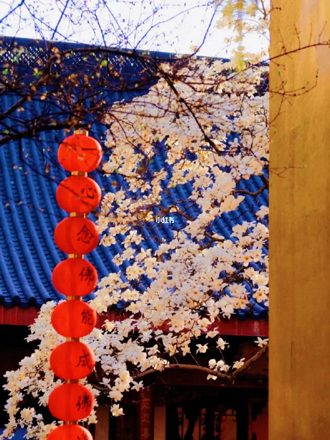 1[樱花R]法喜寺古玉兰花位于进门右转五观堂小院内,搭配着屋檐,大红灯笼,特别有氛围。