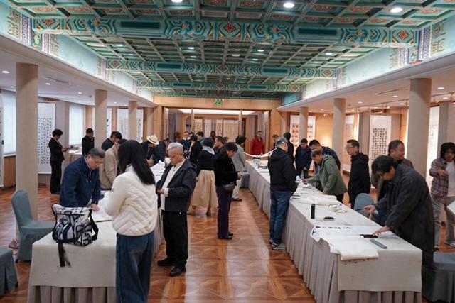书法家们即兴挥毫,创作着一幅幅饱含深情的书法作品。(图片由市文联提供)