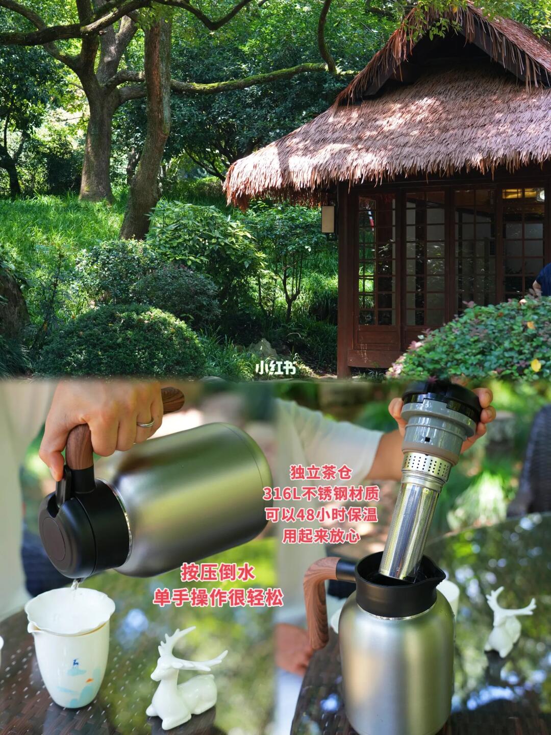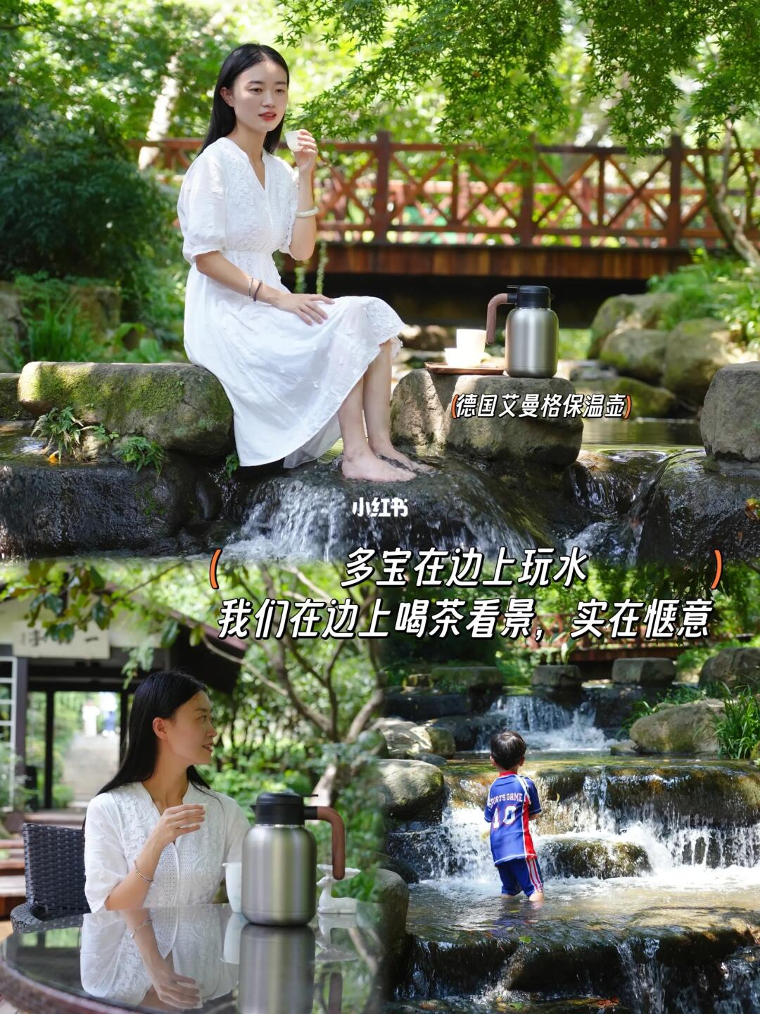 👆保温壶有可拆卸茶仓,不用加满水,茶叶也可完全浸泡,多宝在边上玩水,我们在边上喝茶看景,无比惬意