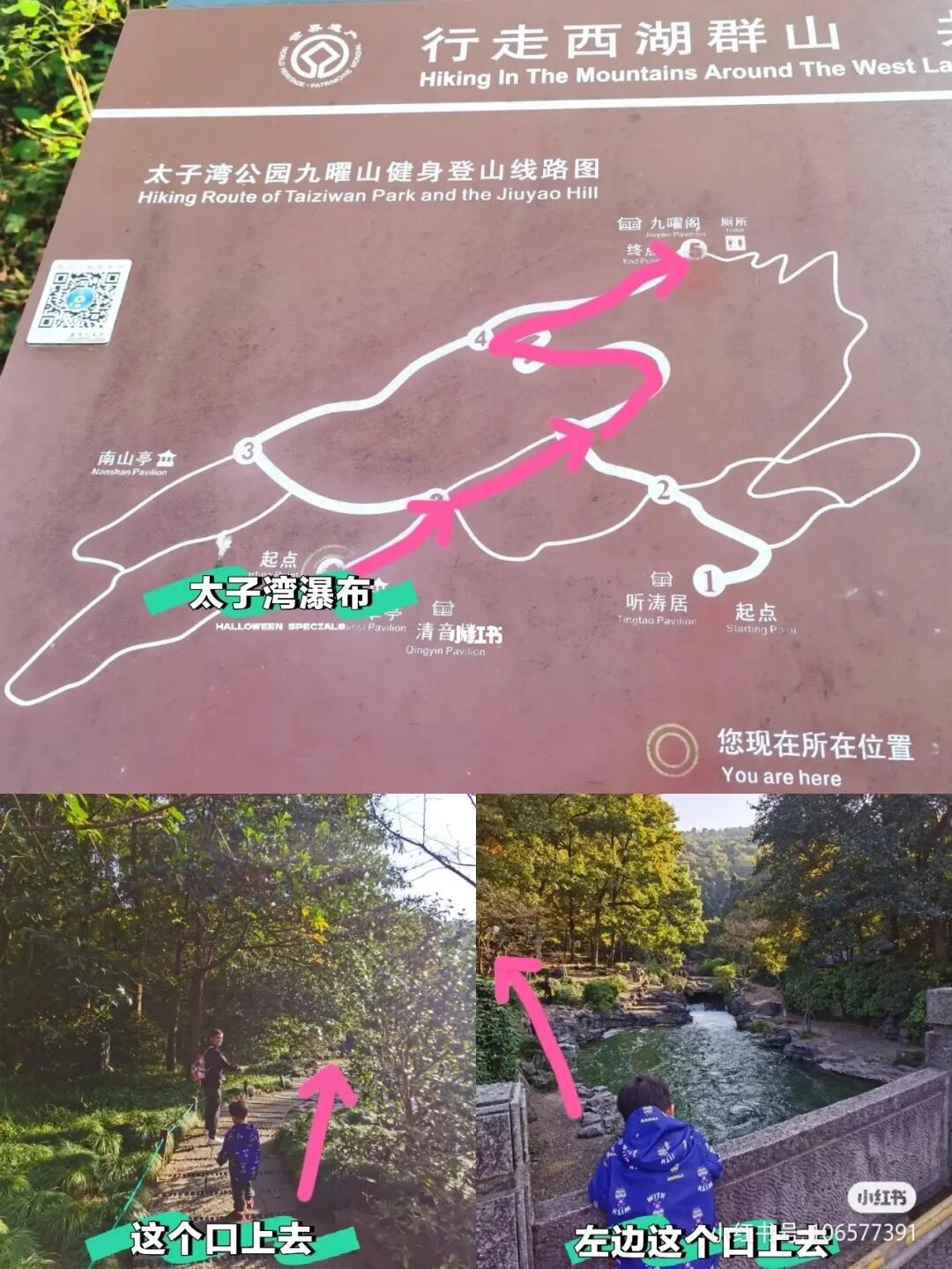 5[打卡R]山下的太子湾公园特别美,有大草坪溪水,人也比较少,爬完山可以一家人在公园里放空,很治愈,然后步行到苏堤,可以坐一次1314公交车环游西湖,也可以坐观光车或者西湖游船。