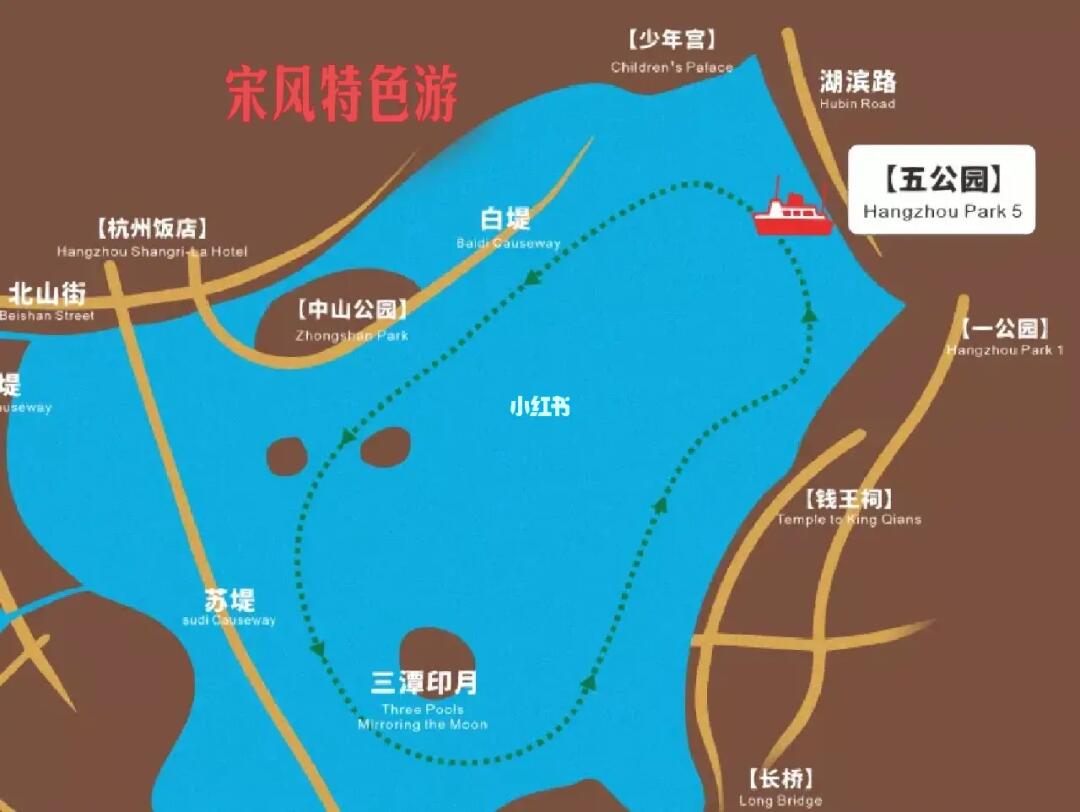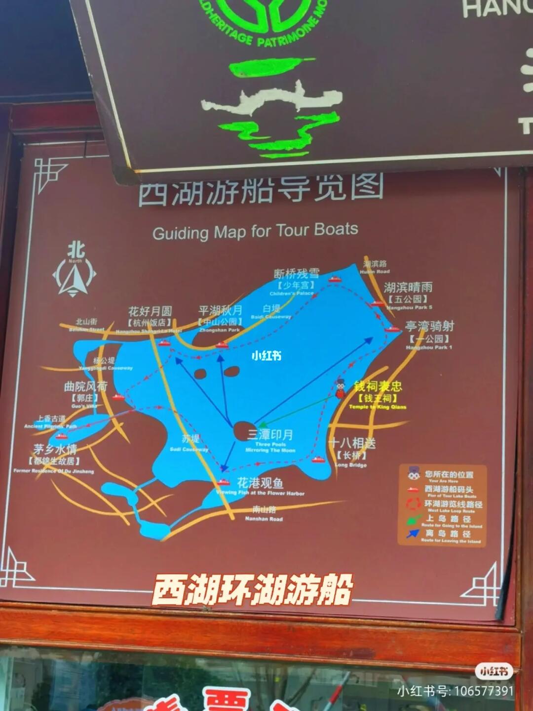 游览后可以凭票选择下列一处上岸,花港观鱼,杭饭,中山公园,湖滨