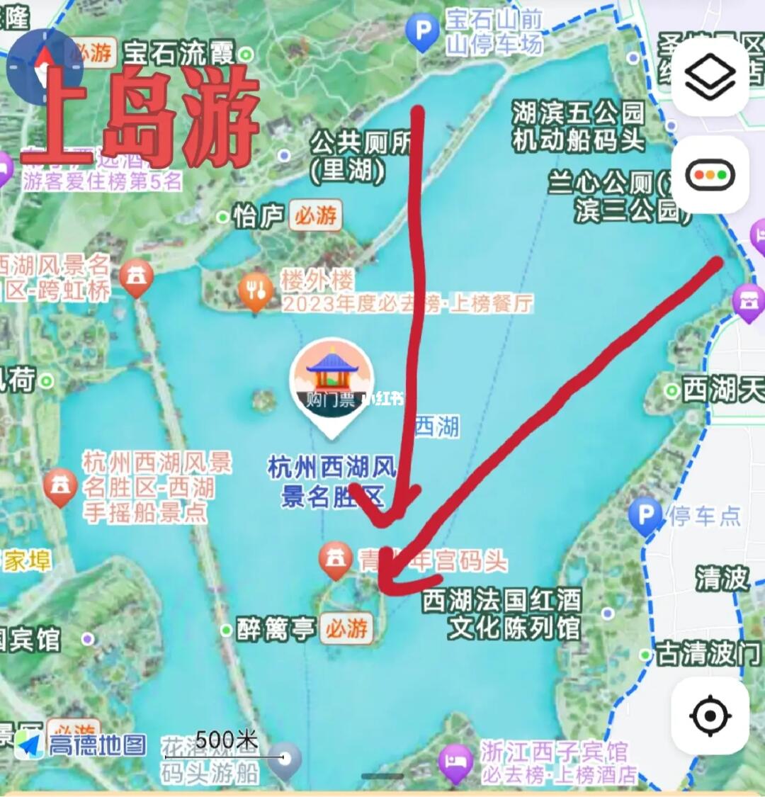 [星R]游船码头到三潭印月岛,岛上游览时间不限