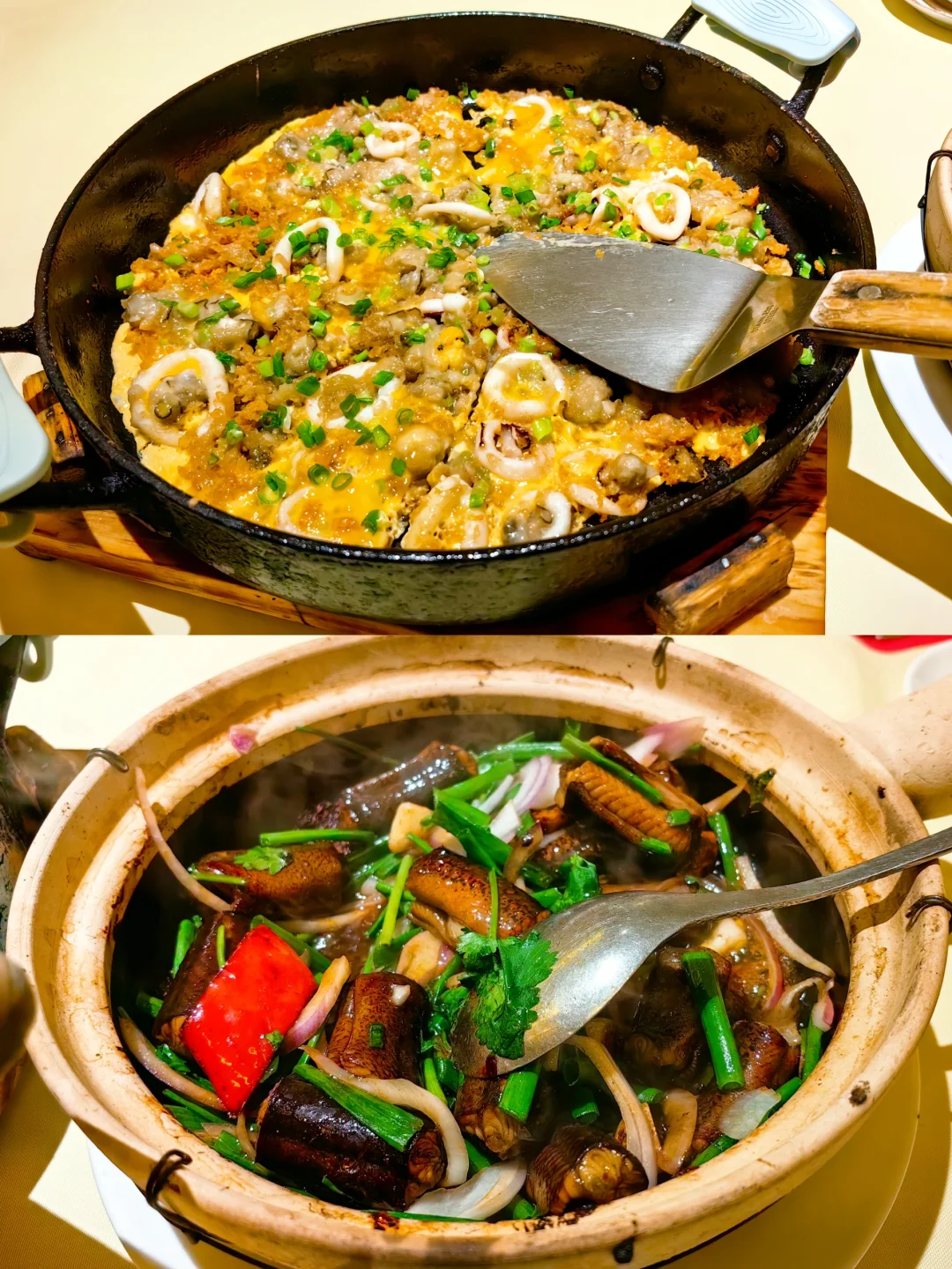 环境就是普通的广式酒楼,里面养了锦鲤,像极了低配版的玉堂春暖(测评之前发过)。主打生啫,自创的啫啫煲是招牌。生啫黄鳝吃着有点生个人不是很喜欢,不如成都的组织向南鳝鱼有种弹牙且入味的感觉。海鲜蚝烙第一口有点惊艳,但是吃多了会腻,建议人多了再点这个。招牌甜品姜撞奶冰淇淋还蛮好吃的。