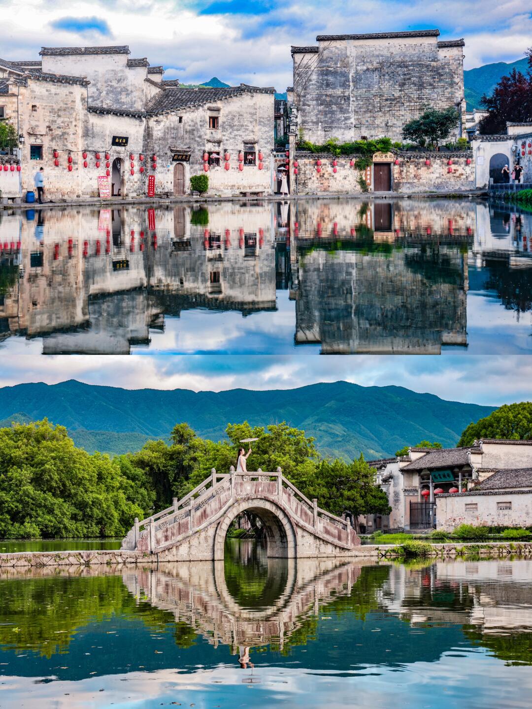 宏村的月沼湖面真的太美了!不愧被誉为古村落的“天空之境”🌌 平静的湖面倒映着白墙黑瓦,随手一拍就是大片!建议清晨或傍晚去,光线柔和,出片更绝!🌅