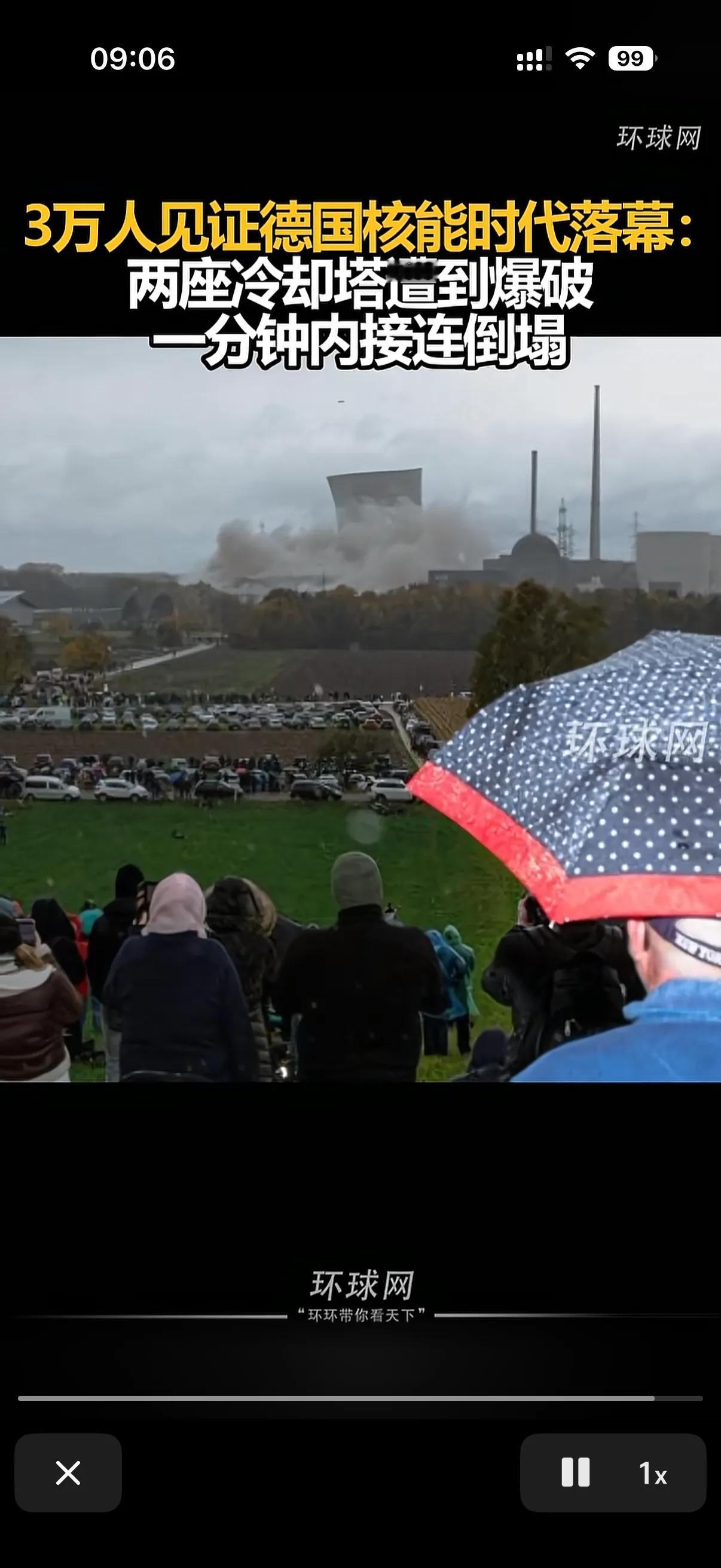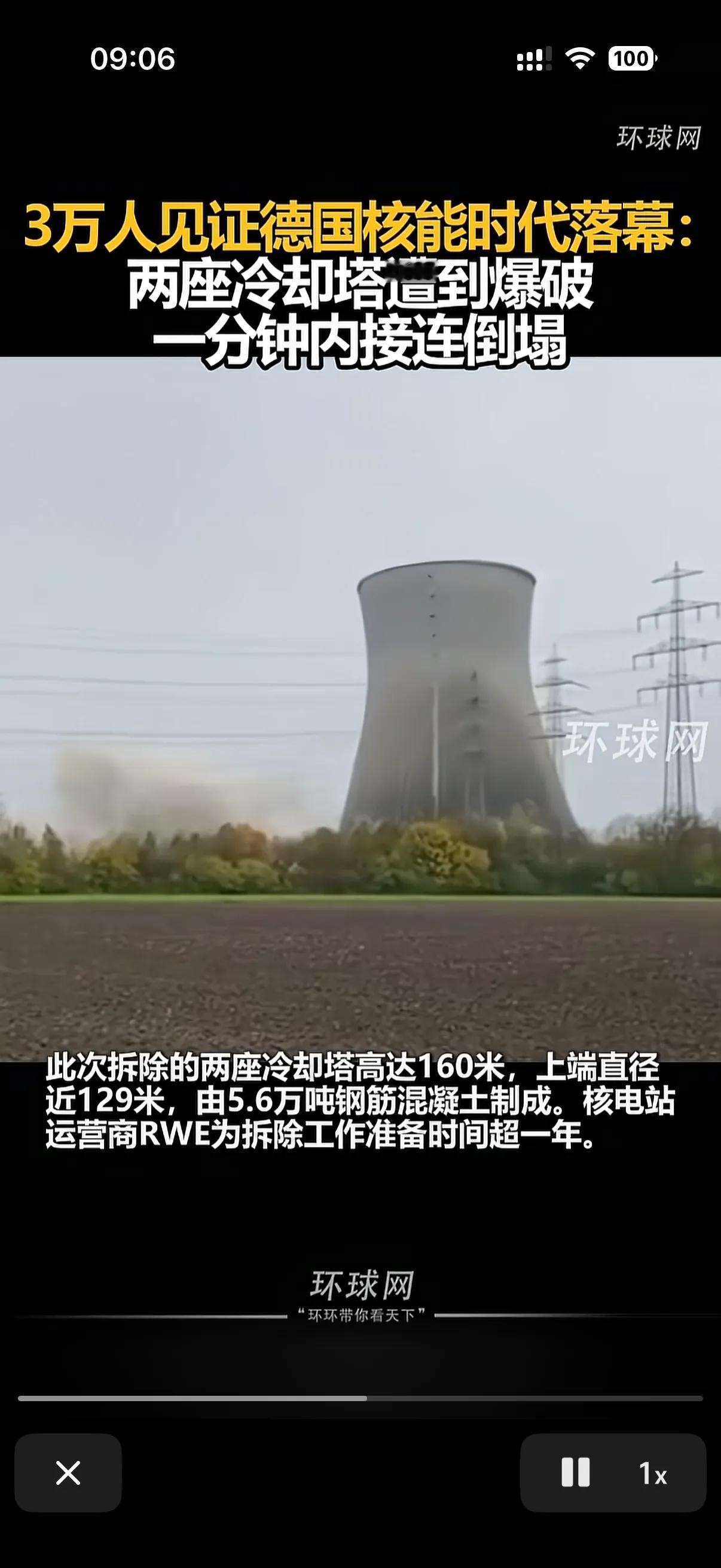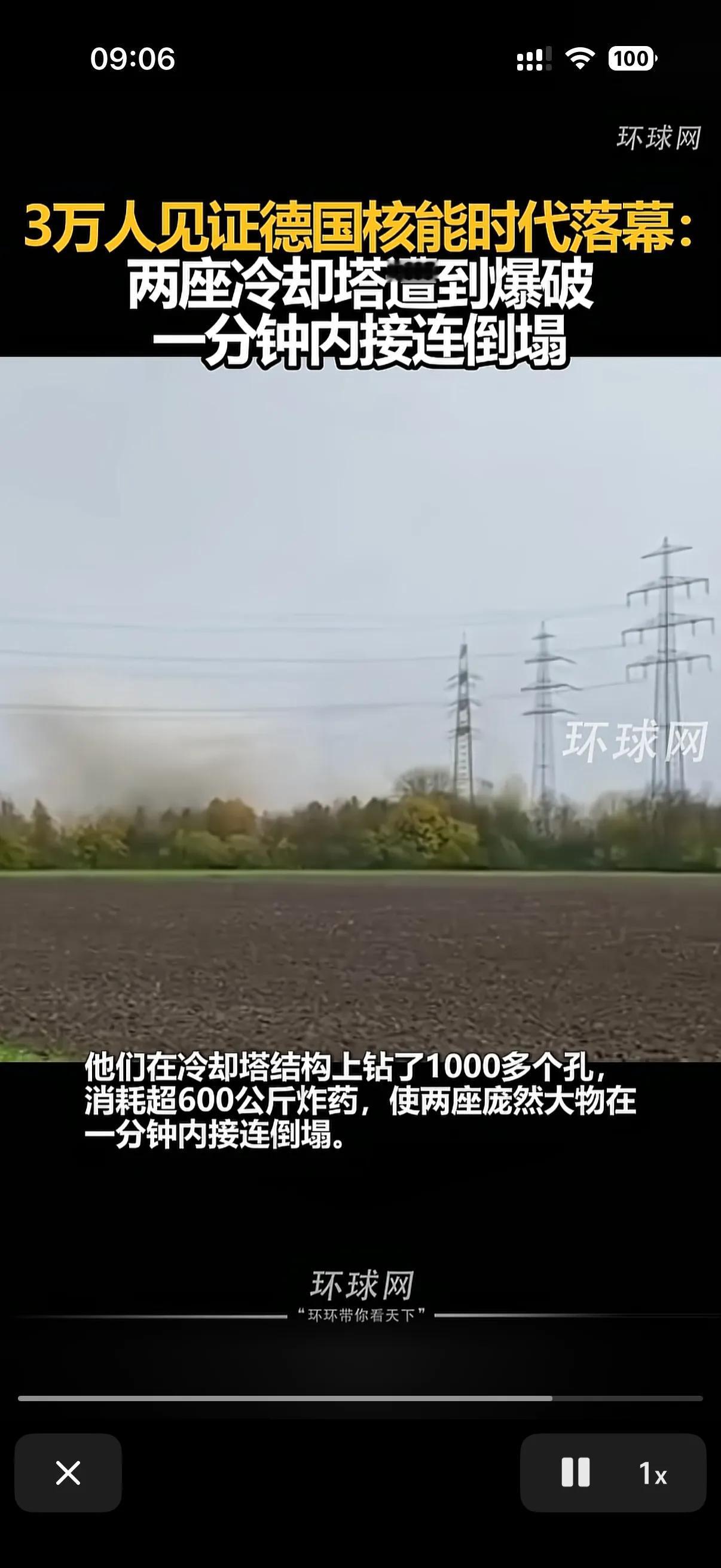 德国放弃核能了!德国炸毁了自己的两座核能冷却塔! 在世界上很多国家还想方设法的建造核能发电站的时候,德国却反其道而行之,直接放弃了核能发电厂! 为了炸毁这两座核能冷却塔,德国足足准备了一年多的时间,这次炸毁冷却塔有三万多人围观见证德国的历史时刻! 自从日本核发电厂发生核泄漏事件以后,欧盟的很多国家都认为核能源发电时是一件危险的事情,作为欧盟的一员,德国就是再怎么不心甘情愿也的顺势而为! 要知道德国的大多数电力供应都是靠着核发电,而且现代化工业建设。 电力供应是最大的关键,在拥有核电站德国当初不仅能供得上自己国家的工业需求,甚至还可以卖电给周边国家,但是现在德国自己炸毁核电设施以后,恐怕未来想要工业强大只能成为空谈了!