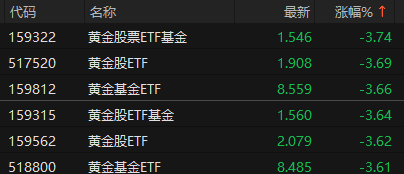 上证报中国证券网讯10月28日,ETF收盘涨跌不一。纳指100ETF(159660)上涨3.00%、军工ETF易方达(512560)上涨1.47%、国防ETF(512670)上涨1.46%、航天航空ETF(159208)上涨1.44%。黄金股票ETF基金(159322)下跌3.74%、黄金股ETF(517520)下跌3.69%、黄金基金ETF(159812)下跌3.66%。