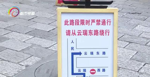 护国街道综合行政执法中队马跃介绍:“原来云瑞西路从这个地方它就是步行街,现在我们考虑往上面推两百米的位置到民生街口,作为一个步行区域。现在机动车可以从云瑞东路,从人民东路到云瑞东路绕进去停胜利堂停车场,还有云瑞中路有一个地下停车场同样可以停,从云瑞西路进来的车可以走民生街出去。”