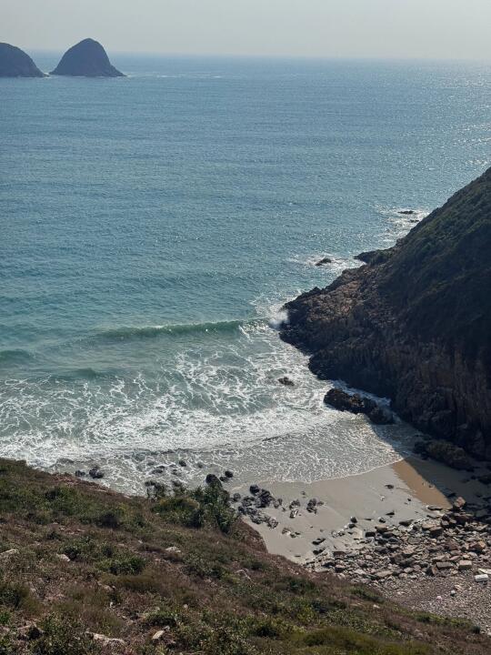 都知道港百硬化路面多,但咱真不知道下坡都是磕磕绊绊的石头🪨第三个爬升是又臭又长的台阶,拍张照片感叹景色太美,就开始走乱石子的下坡路[汗颜R]